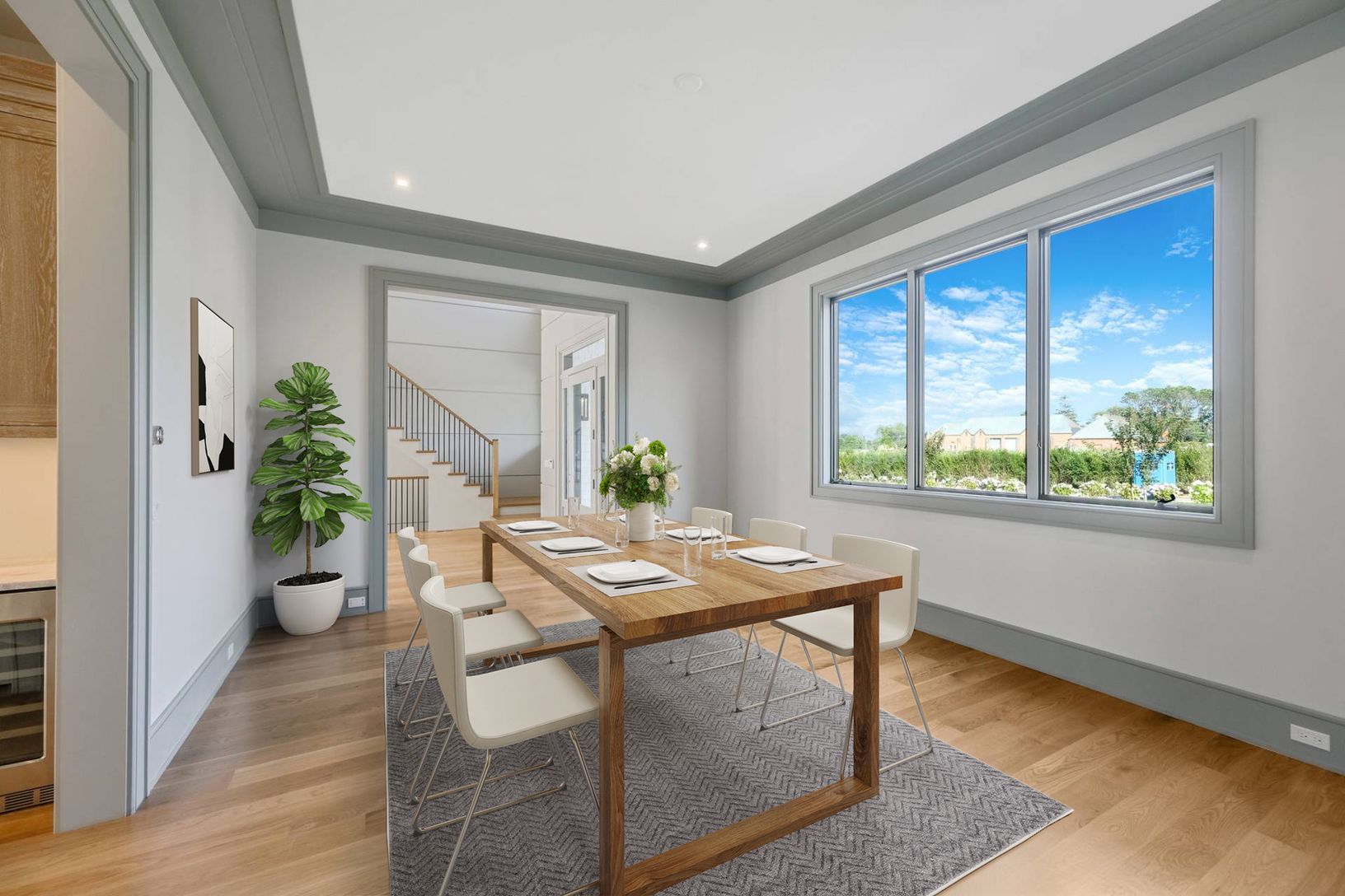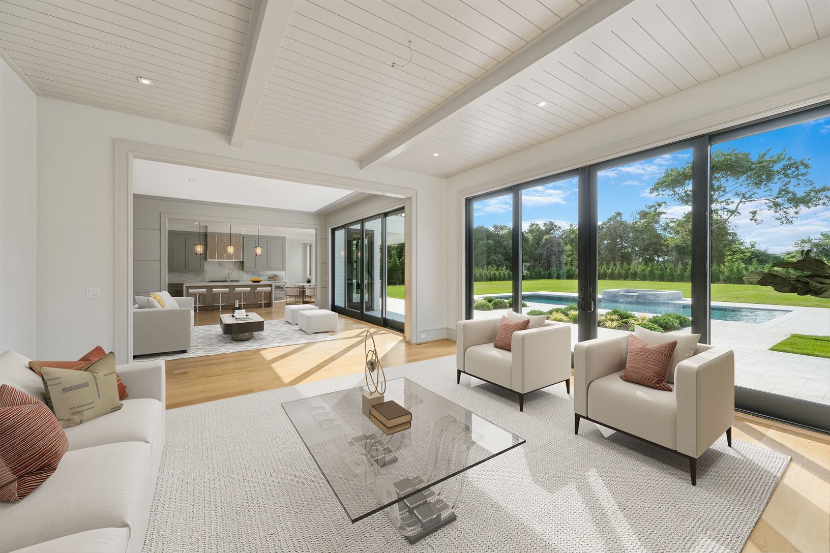 This custom new construction offering features 8 bedrooms, 8 full and one half bathrooms, expertly constructed and professionally designed space on three levels with 10' ceilings and abundant natural light. The first level features a sun filled foyer with shiplap paneling, custom chef's kitchen with quartz countertops and an expansive island with bar seating, that flows into an open great room centered around a fireplace. The first floor also