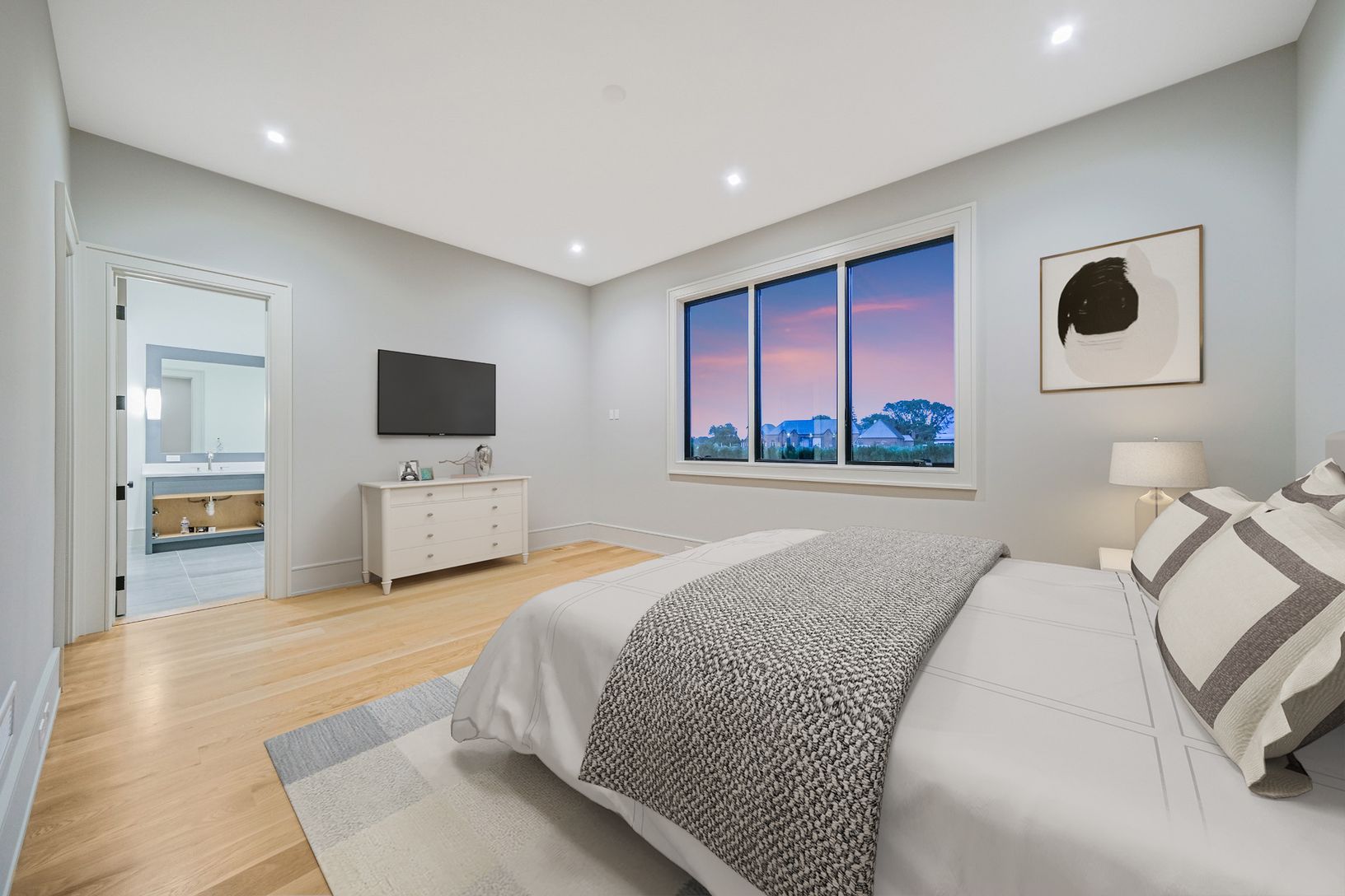 This custom New construction offering features 8 bedrooms, 6 full and two half bathrooms, expertly constructed and professionally designed space on three levels with 10' ceilings and abundant natural light. The first level features a sun filled foyer with shiplap paneling, custom chef's kitchen with quartz countertops and an expansive island with bar seating, that flows into an open great room centered around a fireplace. The first floor also