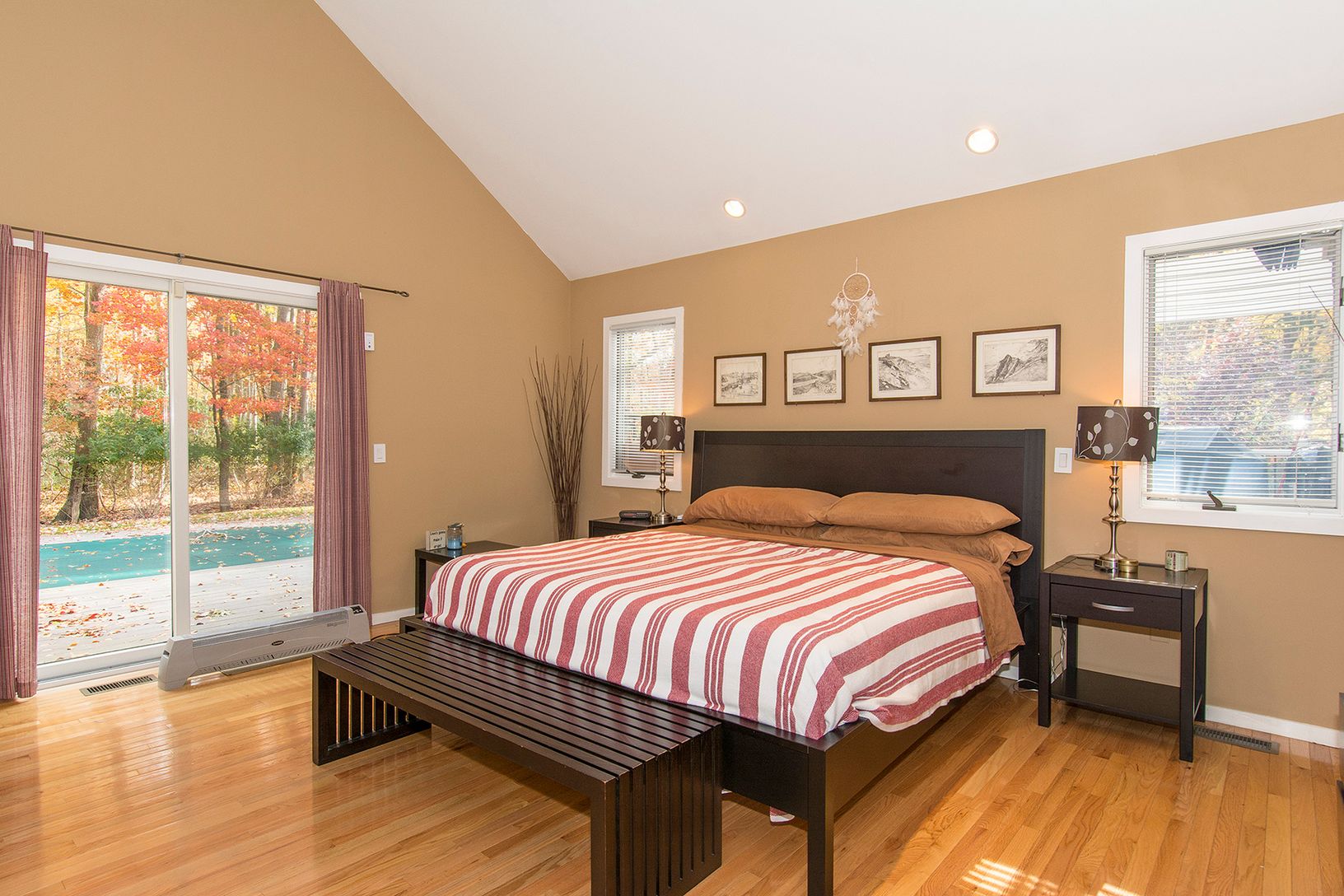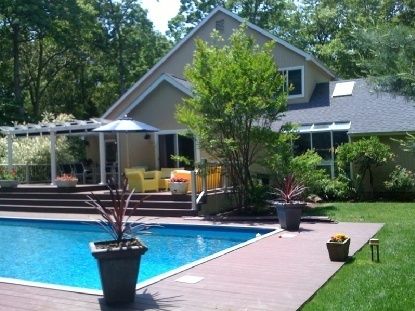 Through private gates, this comfortable contemporary home close to Water Mill as well as Sag Harbor villages features 4 bedrooms, 3.5 newly renovated baths, living and dining rooms both with fireplaces, den, sun porch, sensational outdoor entertaining decks surrounding the pool and gorgeous gardens. The first floor master bedroom features a jacuzzi tub, radiant heated floors and privacy abounds as the property is bounded by a reserve on one s