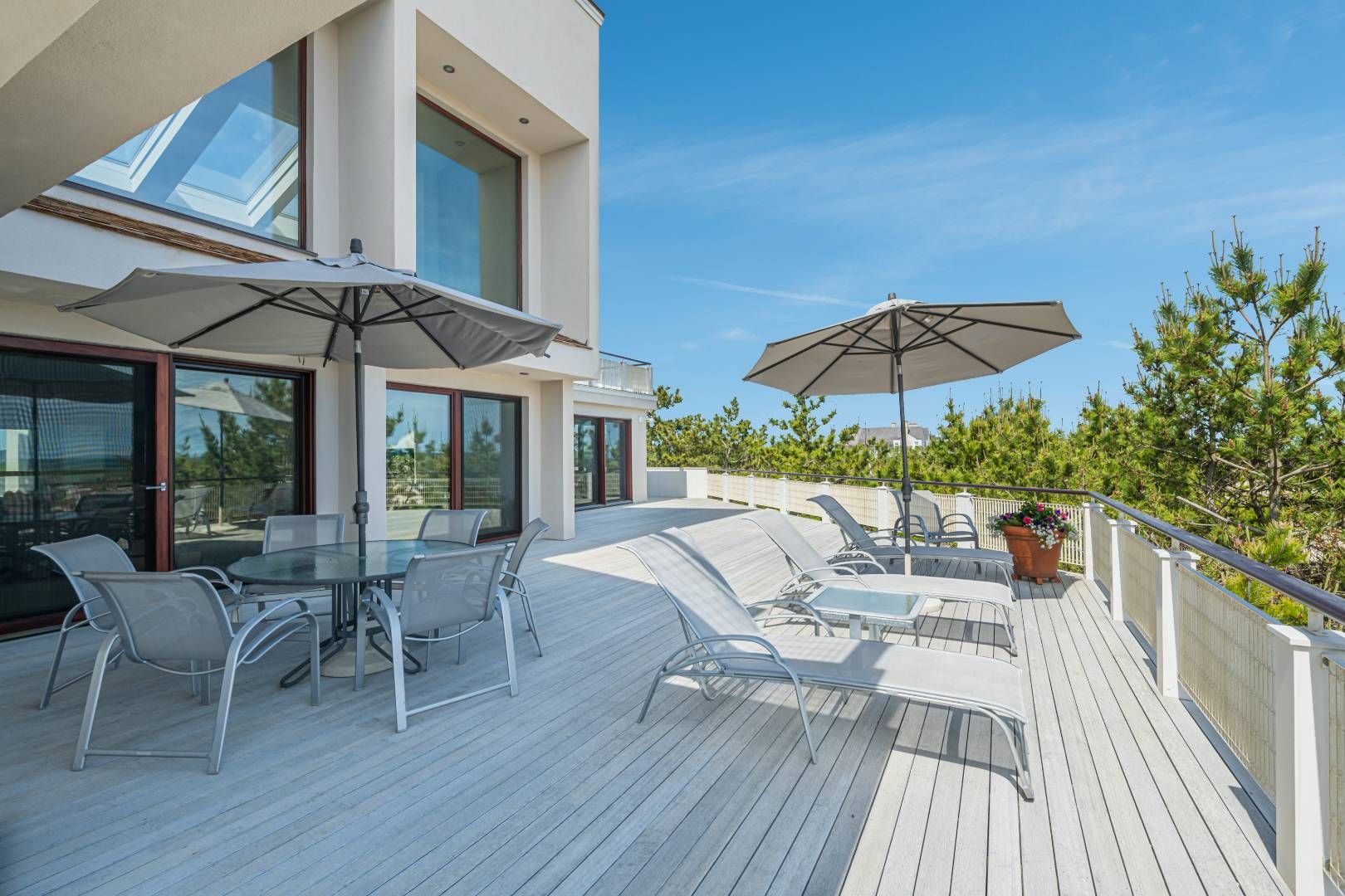 Room for everyone this summer on Meadow Lane. A captivating modern residence in beautiful condition with wide frontage and surf break views of the Atlantic Ocean as well as jaw-dropping sunset views of Shinnecock Bay. Breathtaking ocean and bay views, combined with an abundance of natural light, fill each room through expansive glass walls and skylights, offering an exceptional seasonal living experience across 8,293 square feet of modern coas
