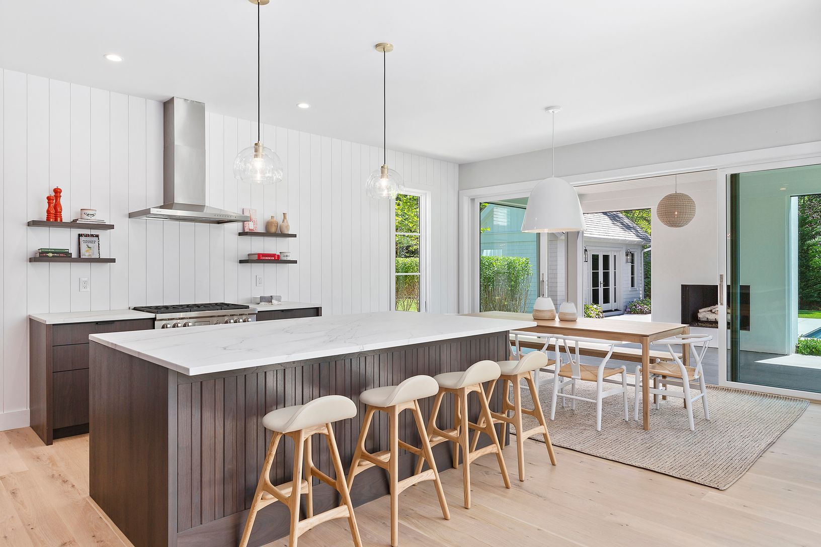 This stunning south-of-the highway, new construction, is nestled in the Georgica section of East Hampton Village. A collaboration of MAP Development and Fred Smith Architects, this exquisite home spans 4,300 +/- square feet on three levels, boasting six bedrooms and seven and one-half baths. On the first floor, the large open, custom Henry Built kitchen, features only the highest quality stainless steel appliances. Just off the kitchen, is an