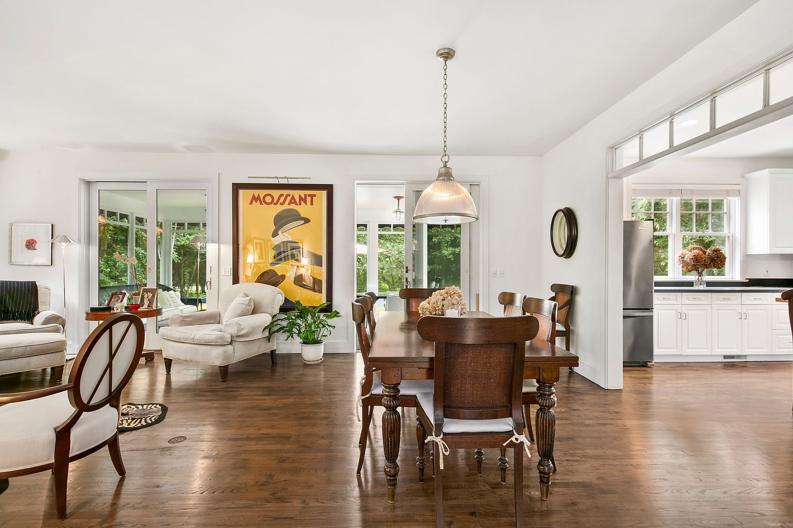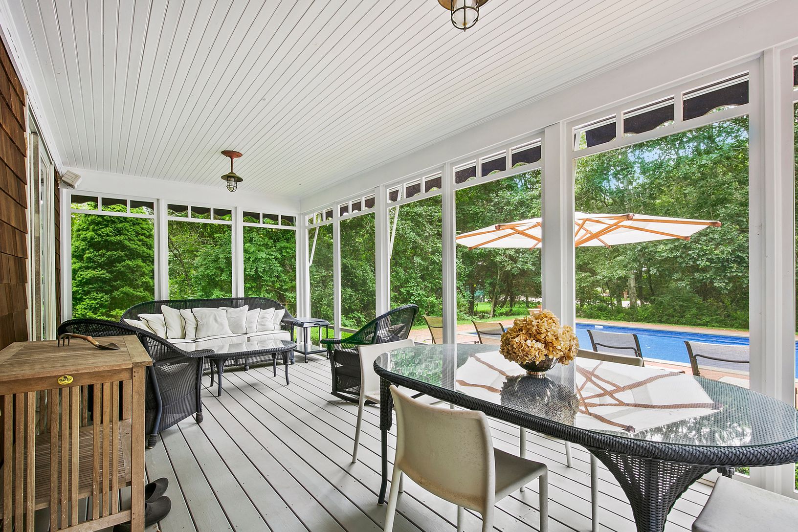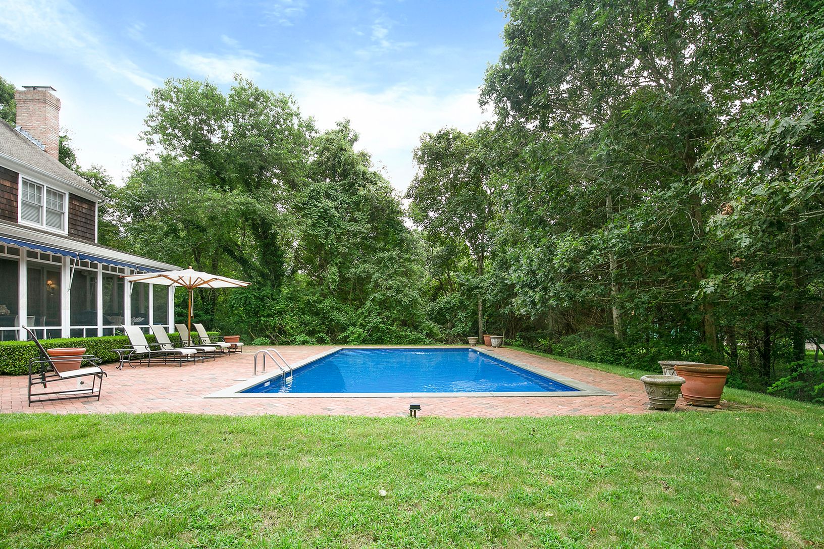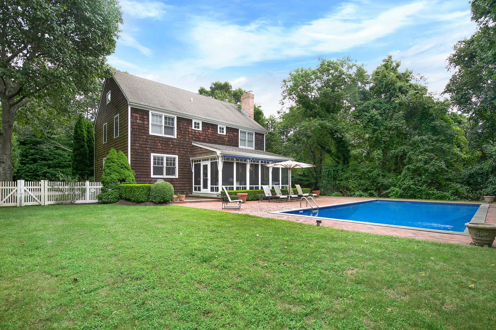 Located in the heart of Bridgehampton horse country is 2,400 +/- square foot home situated on almost one acre. A beautiful four-bedroom, three-bathroom home consisting of a double-height foyer with direct views of the grounds and pool, large greenroom with woodburning fireplace, gourmet kitchen and quiet library. Upstairs you will find a master suite with fireplace and three guest suites. Outside there is a large screened in porch, custom awni