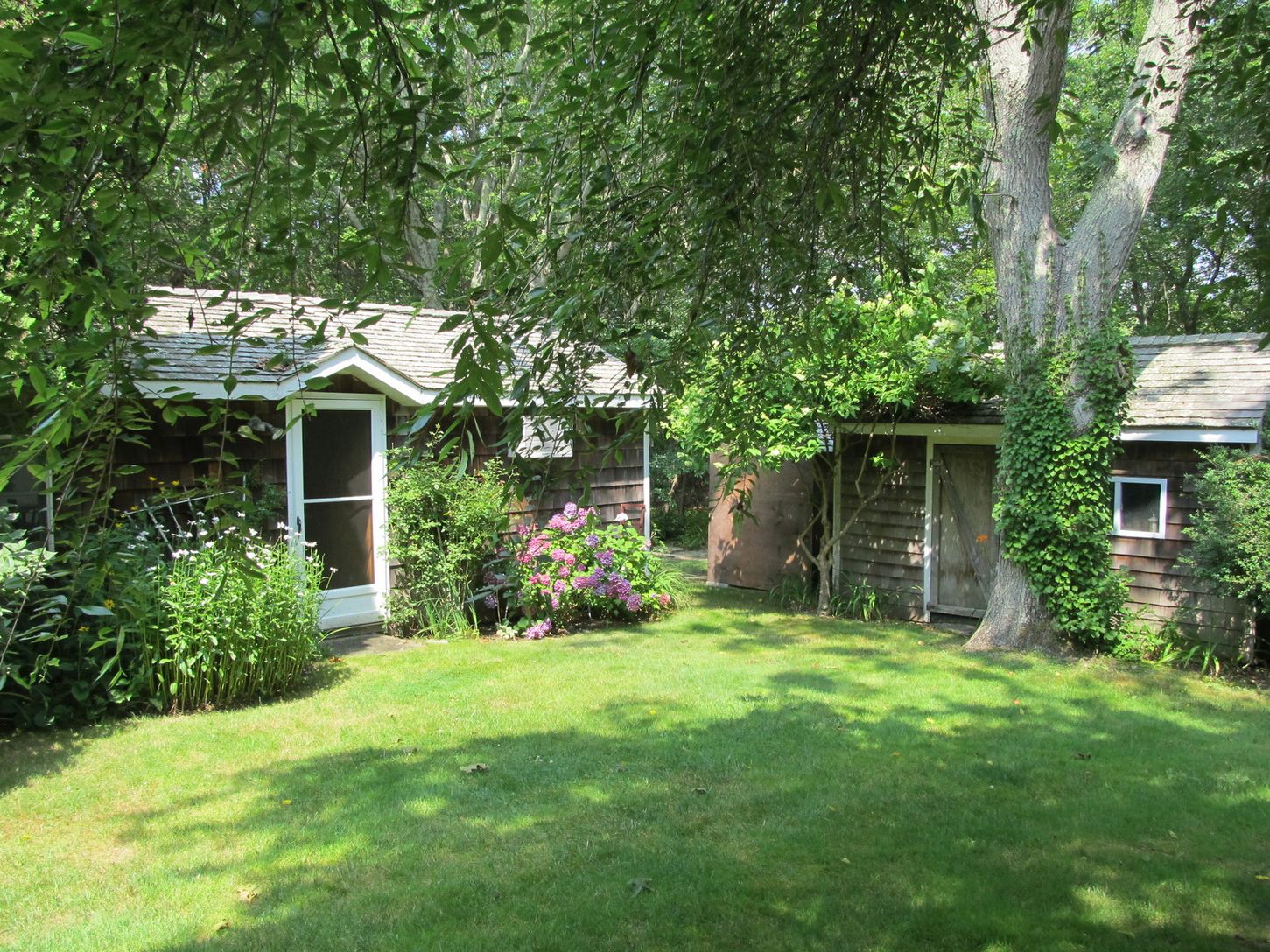 Surrounded by reserves and magnificent specimen trees, this 1840s renovated traditional home features three bedrooms, two baths, formal dining with bay windows overlooking the garden patio, year round sunroom, living room with fireplace, chefs kitchen and an outdoor shower. The upstairs master also has an adjoining office or small living room. Additionally there is a separate cottage used as a light and bright year round artists studio includ