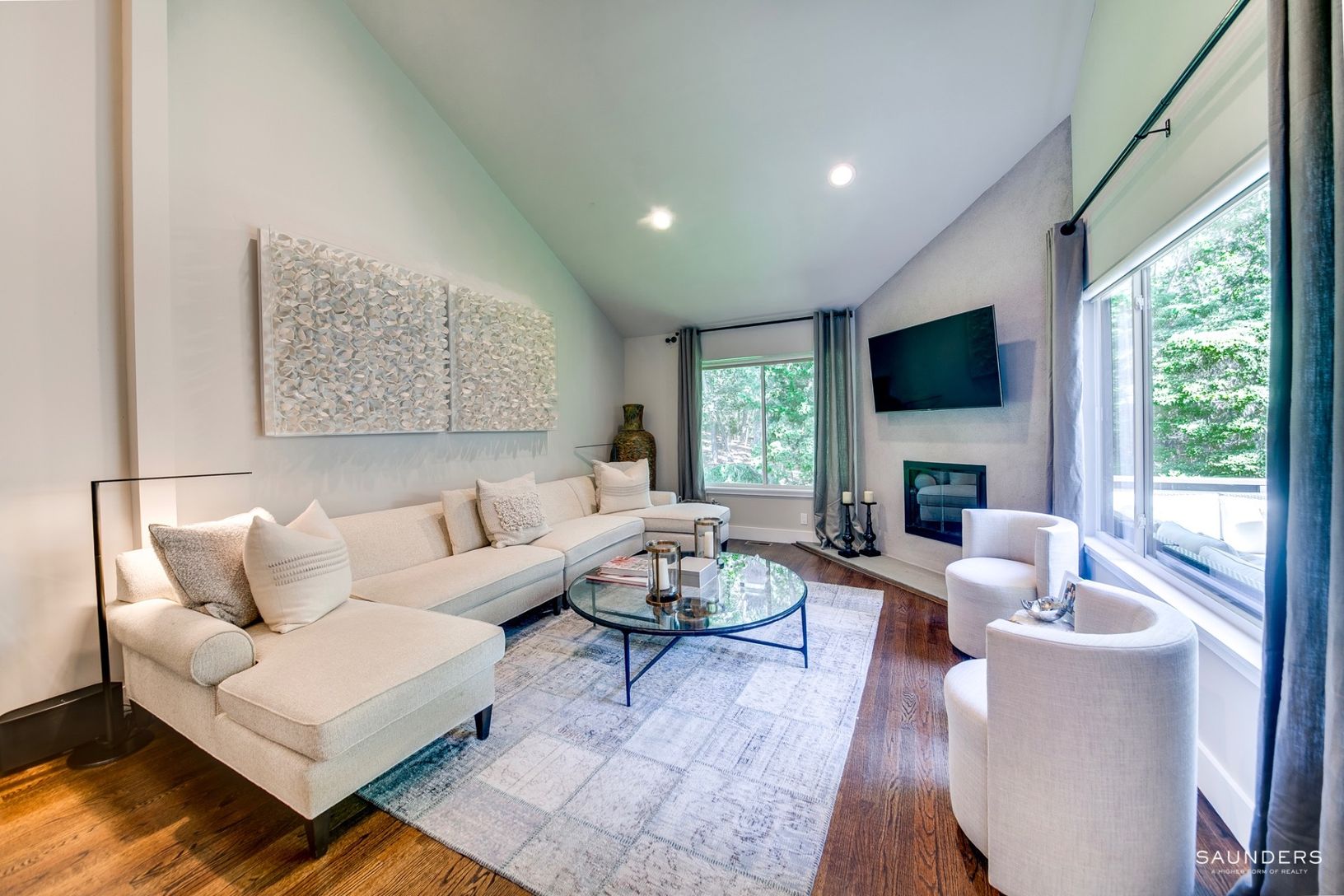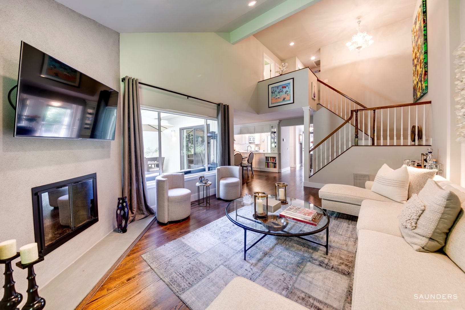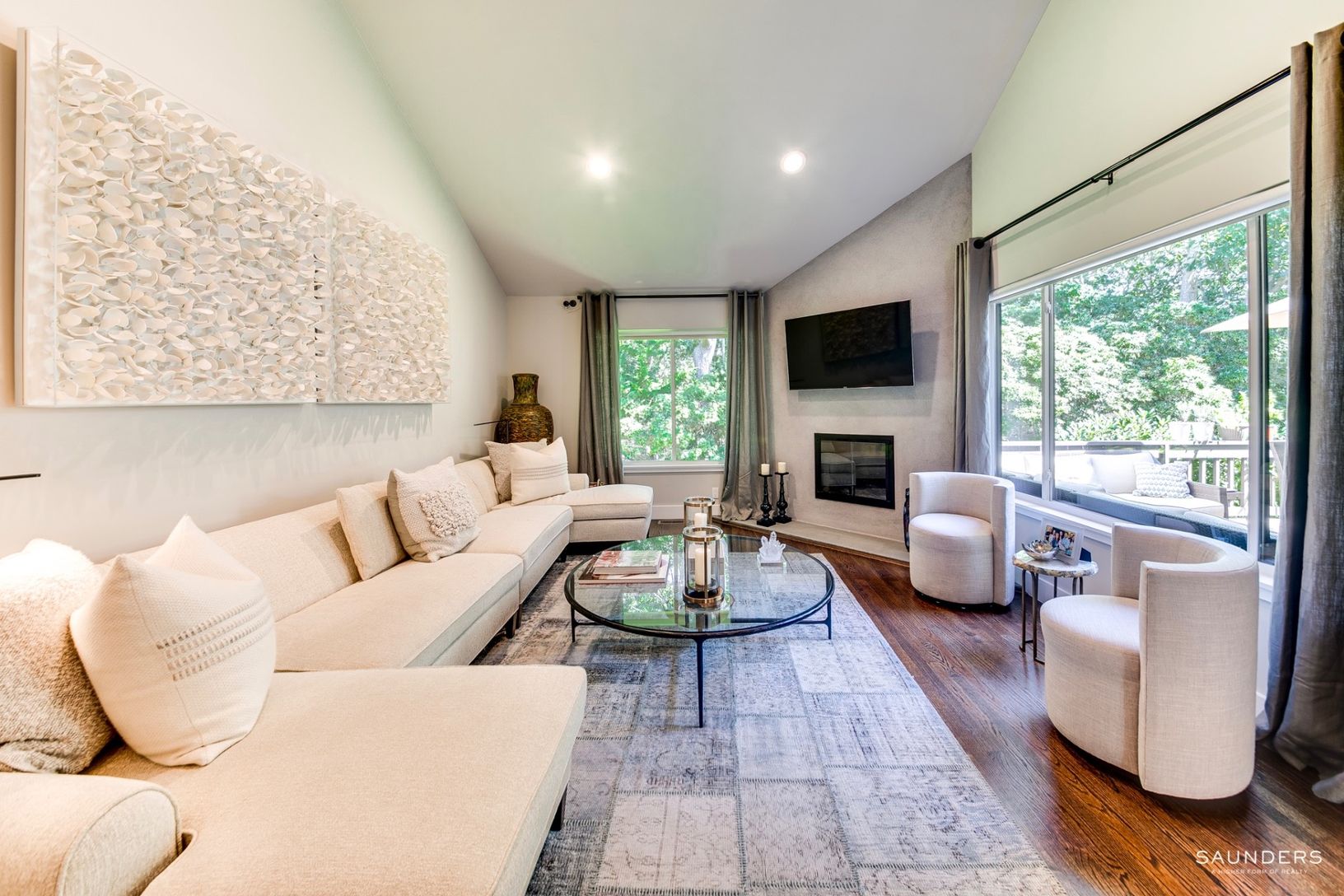 Enter this light-filled four bedroom, four-bath condo in desirable Treescape through a large private mahogany front deck. This condo offers 2,255 sq.ft. of finished space and was completely gut renovated in 2009. This impeccably maintained condo offers the perfect space to enjoy your time in the Hamptons without the hassles of property maintenance. The first floor offers open-plan living areas with a cathedral ceiling and wood-burning fireplac