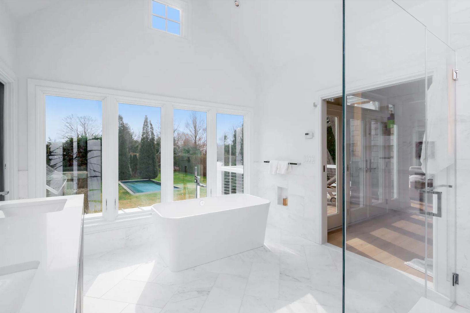 Be the first in this beautiful, just finished Southampton village home. The four bedroom 4.5 baths, decorator home features, an open floor plan with chef kitchen, living room, dining area, wood burning fireplace, and lots of extra room. Each bedroom has its own bath and the primary has a private deck in addition. Covered porches invite great dining and entertaining overlooking the very private gardens with a heated pool. Close to the village a
