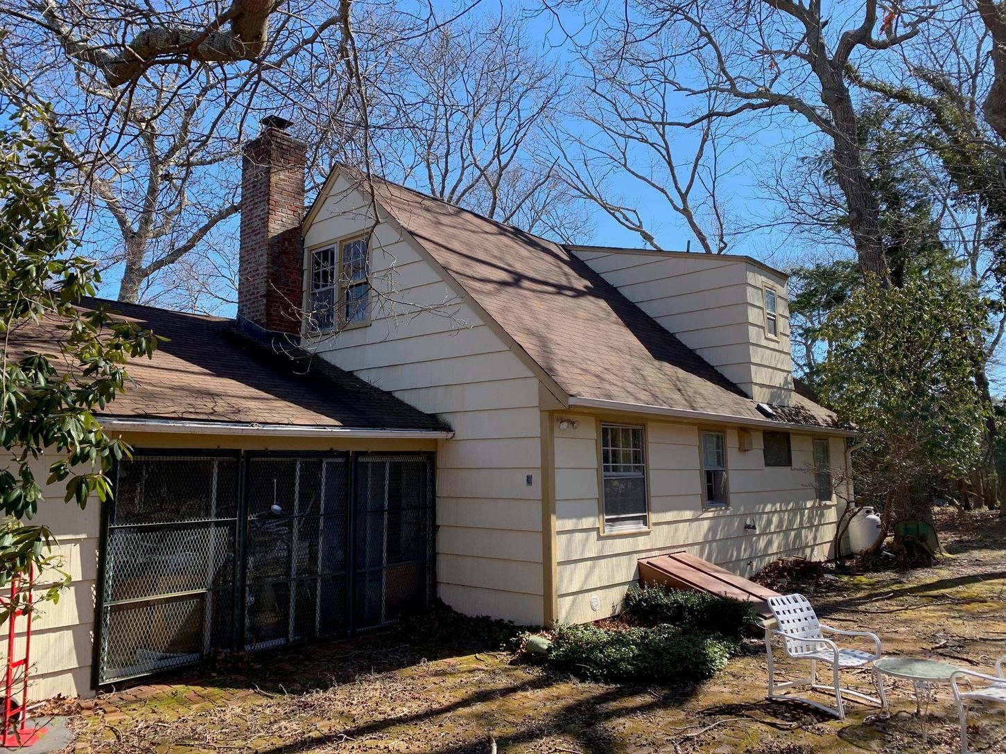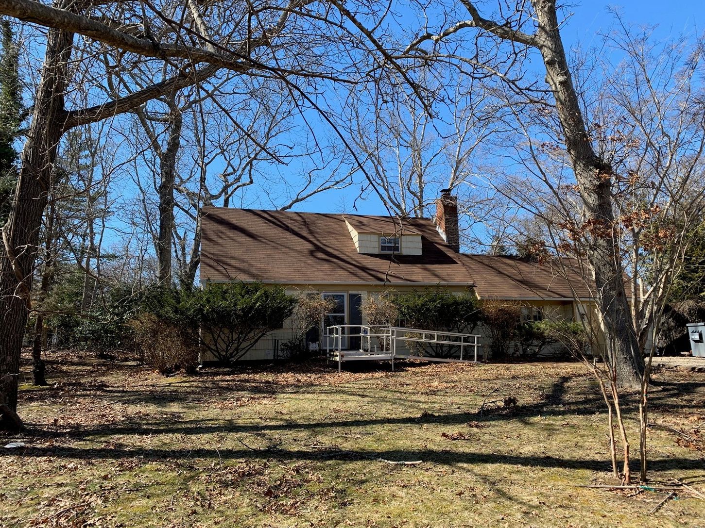 Tucked away on a .43 acre parcel in East Hampton's Clearwater Beach community, this three bedroom, two bath home offers many possibilities to make it your own. Currently the house is comprised of two levels of living space, with a master bedroom and bathroom on the first floor, along with the kitchen/dining/living room with fireplace. A glass enclosed breezeway/sunroom connects the house to a one car garage. Upstairs, two additional bedrooms a