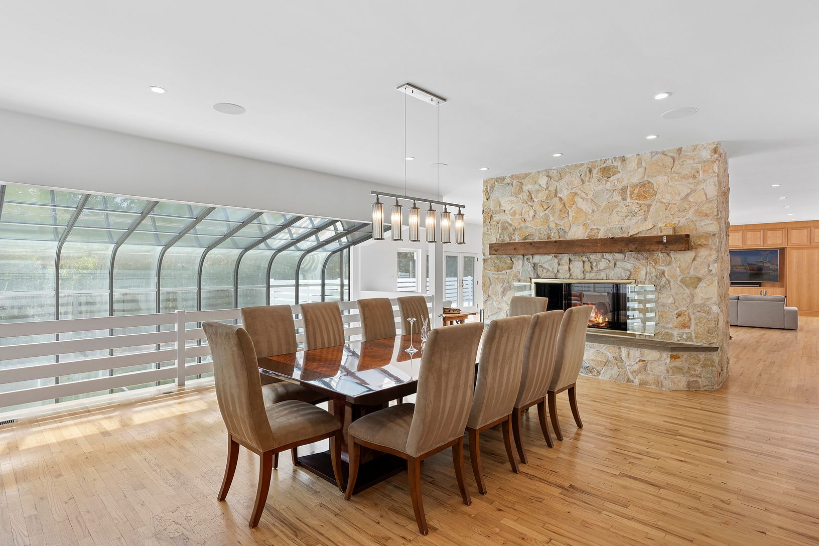 Step into your own 9,000-square-foot Hamptons hideaway, privately set on over 10 acres of tranquil, wooded surroundings. Designed with both comfort and entertainment in mind, the property includes an all-weather tennis court, a 52’ x 27’ heated gunite pool, and a two-level cabana perfect for lounging, dining, and hosting summer gatherings.