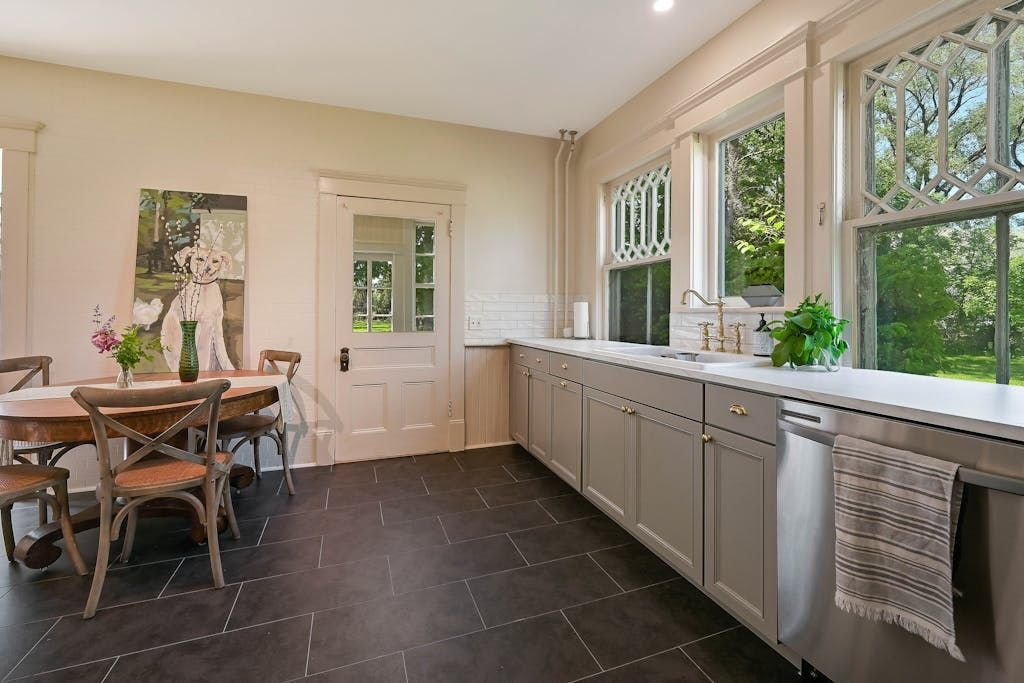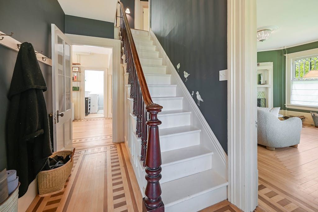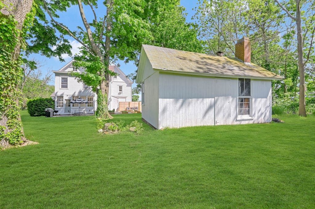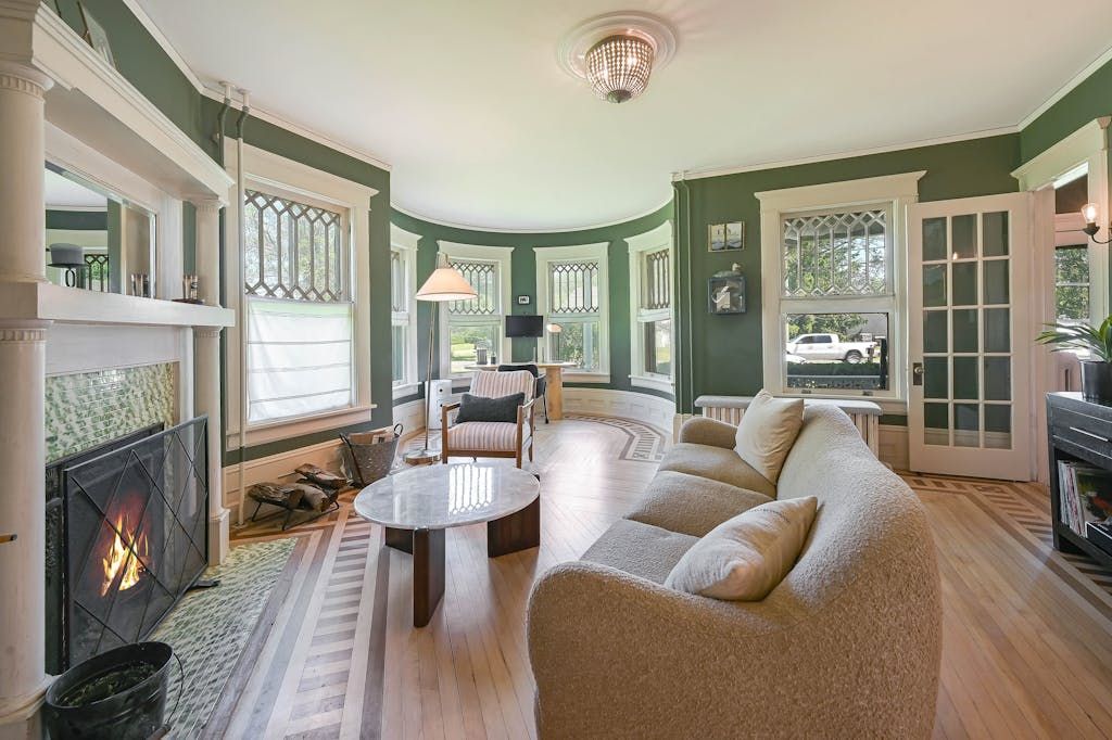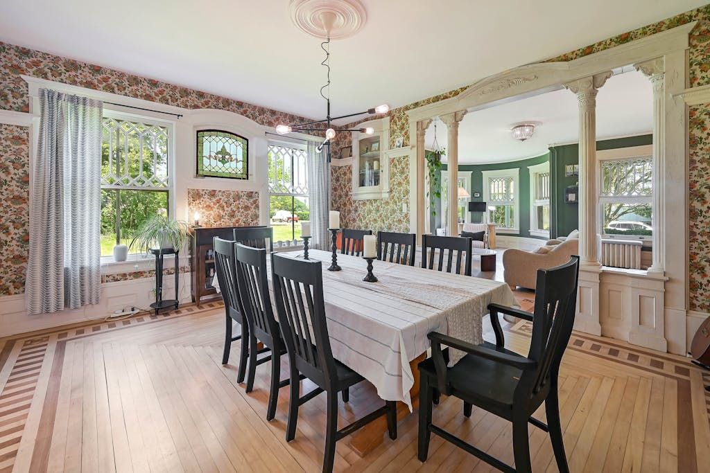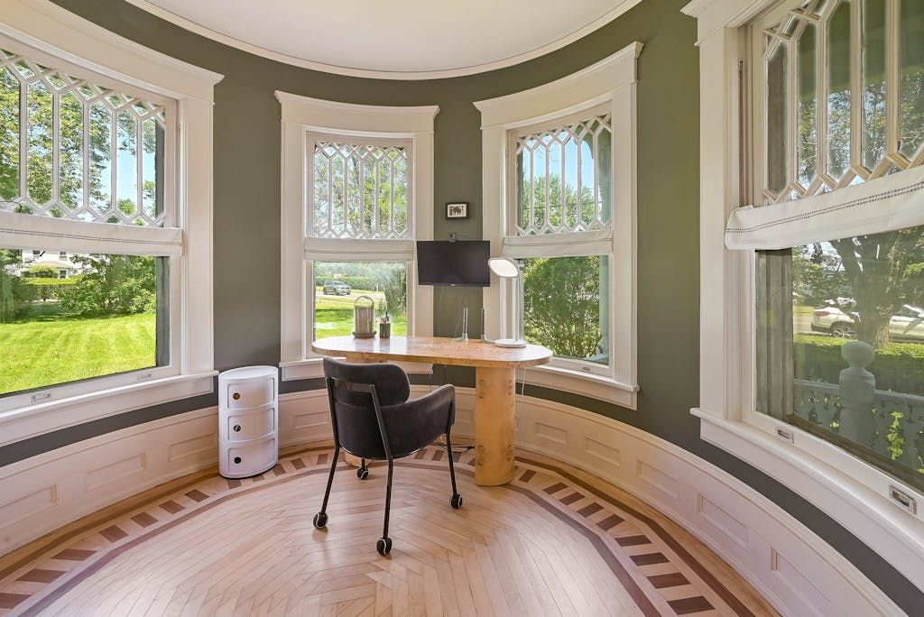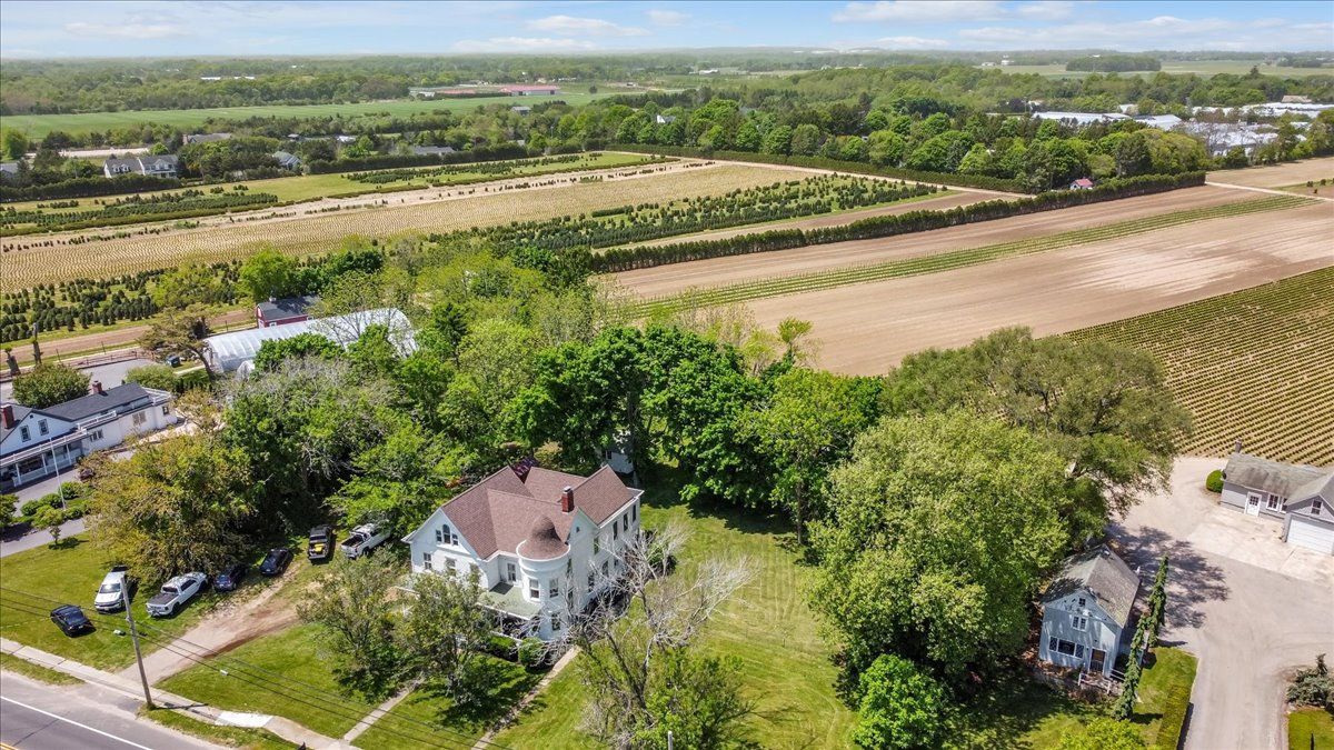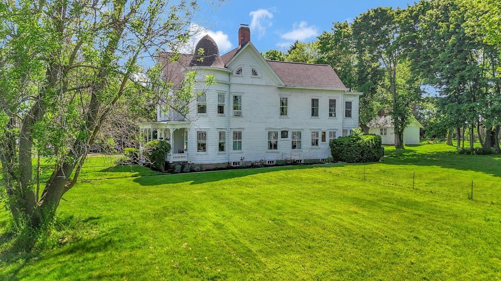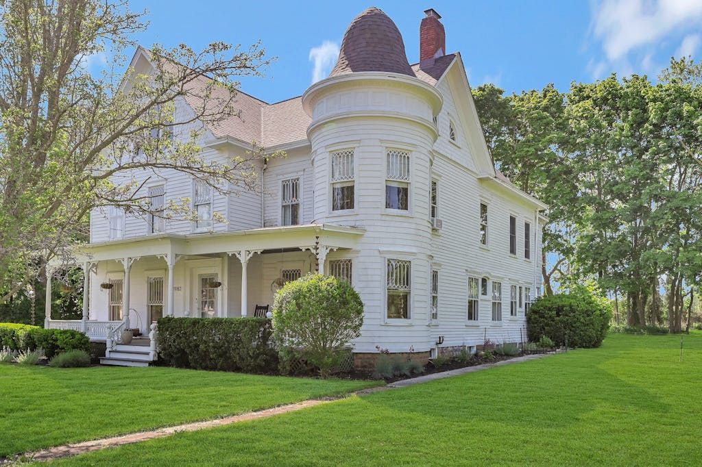 The picturesque Penny Homestead's distinctive Queen Anne Victorian-style mullioned windows and turret welcome visitors to Laurel. Lovingly renovated by a descendent of another original North Fork family, the home features spacious, high-ceilinged rooms with intricate maple and walnut inlaid floors, stained-glass windows, built ins and many other original architectural details. In addition to 3 bedrooms and 2 full baths in the main part of the