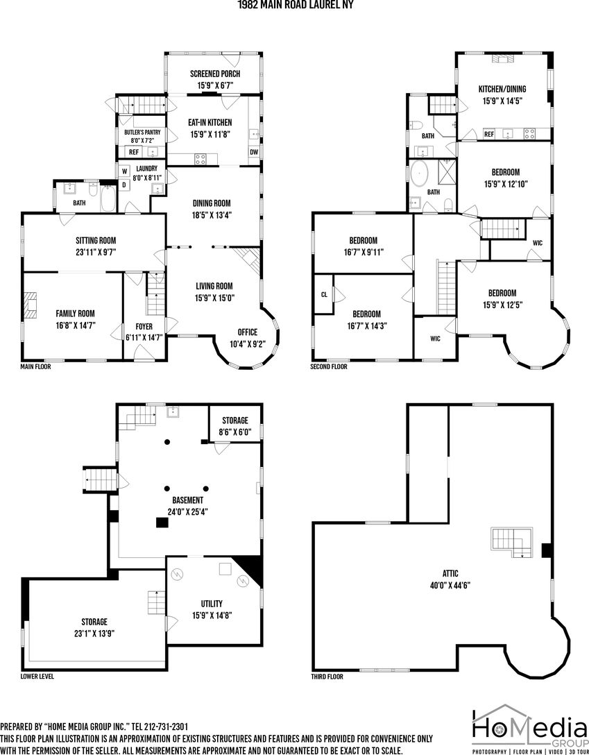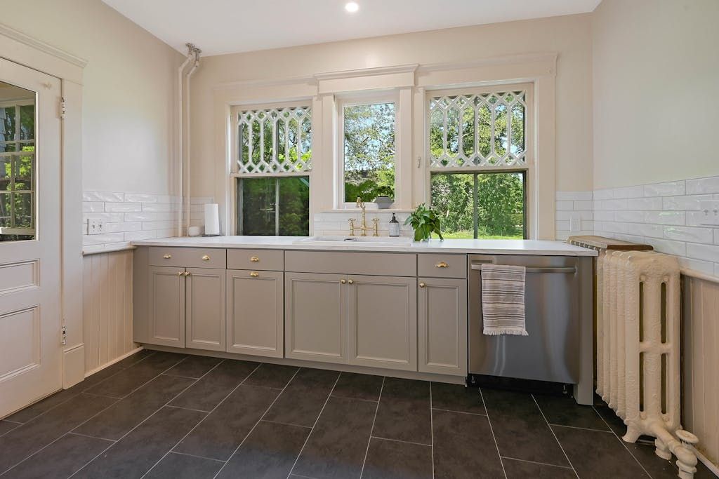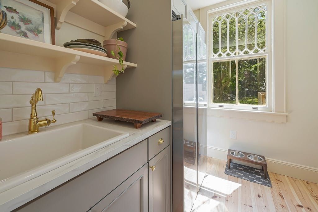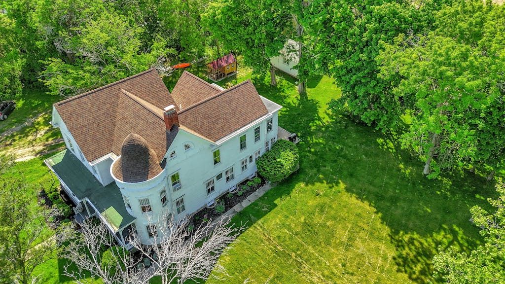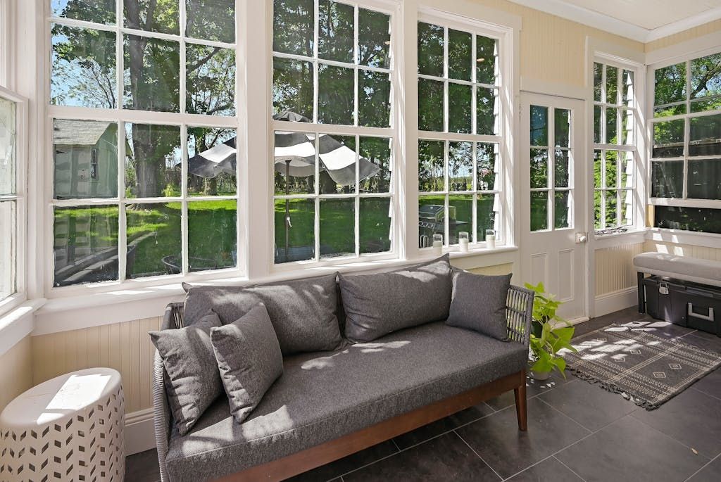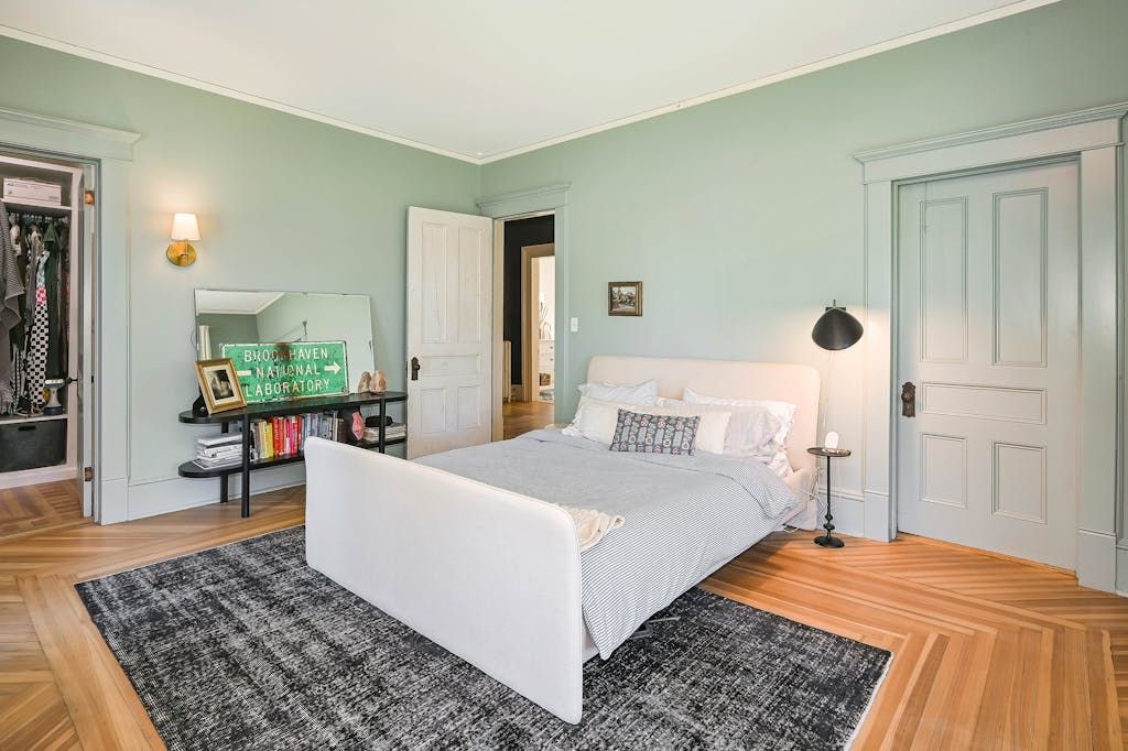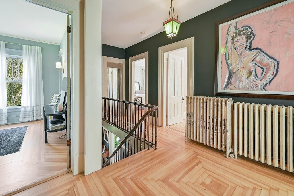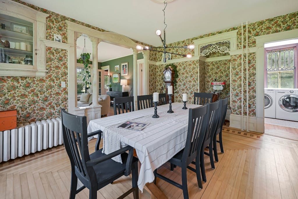 The picturesque Penny Homestead's distinctive Queen Anne Victorian-style mullioned windows and turret welcome visitors to Laurel. Lovingly renovated by a descendent of another original North Fork family, the home features spacious, high-ceilinged rooms with intricate maple and walnut inlaid floors, stained-glass windows, built ins and many other original architectural details. In addition to 3 bedrooms and 2 full baths in the main part of the