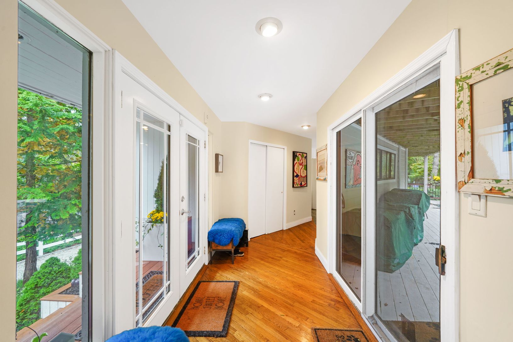 This beautiful contempory home is set back on a secluded 1.3 acre piece of property in the prestigious town of Water Mill! If you are looking for a private and peaceful setting then this is the house for you! The home features 4 bedrooms, 2.5 bathrooms, 2 car garage, a partial basement that is finished with one bedroom.The first floor includes a foyer, two large bedrooms, full bathroom, laundry room, screened in sun room and a kitchenette. The