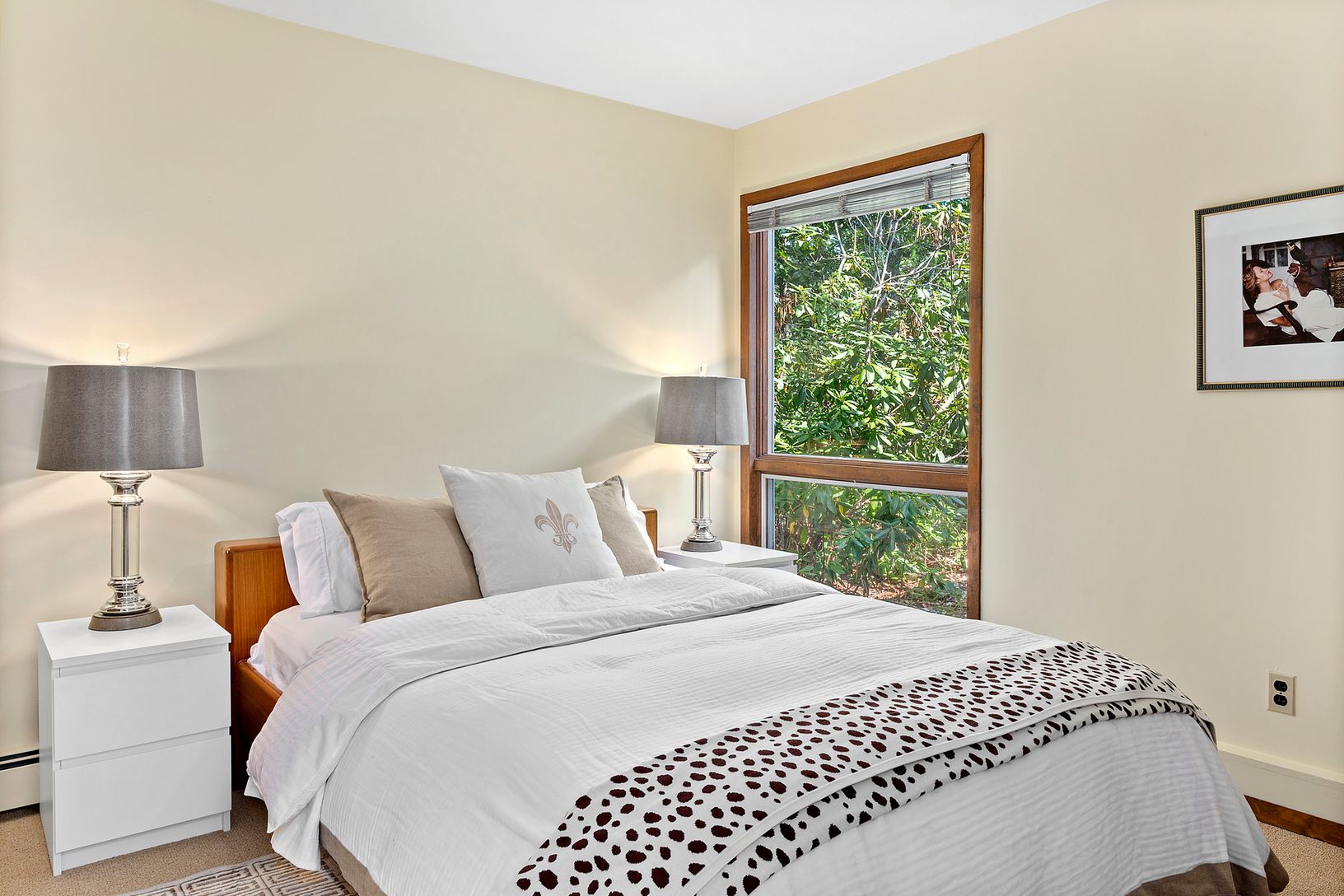 Set on your private half acre, this Mid Century Modern home offers a unique style ready for your personal touch. The large great room with vaulted ceilings brings the outdoors in with an expansive deck and pool area surrounded by lush landscaping. The sun-drenched kitchen and dining open to the large den with fireplace, as well as extra office area overlooking the deck and outdoor dining area.