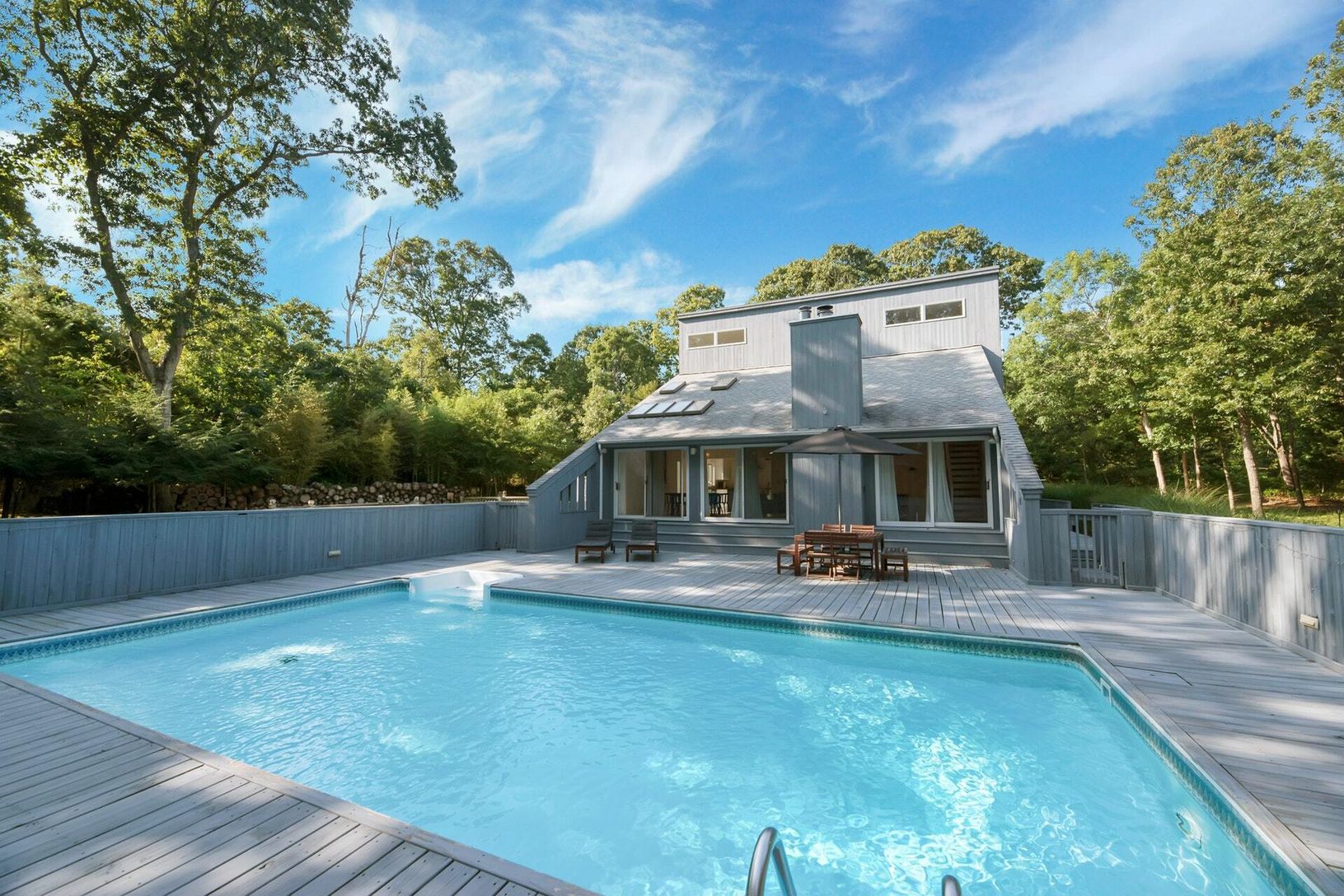 Beautiful airy contemporary, in Bay Woods Development bordering wooded public land on the East side. 3 Bedrooms, 2.5 Baths, Open Floor Plan with Spacious Living Room Looking out to Heated In Ground Pool with Large Deck. Renovated Kitchen makes Cooking a Joy! Family Room for Quiet Times. Master on First Floor with Renovated Bath, Second Floor Two Bedrooms with Renovated Full Bath. Fireplace, Half bath, Outdoor Shower don't miss this lovely home