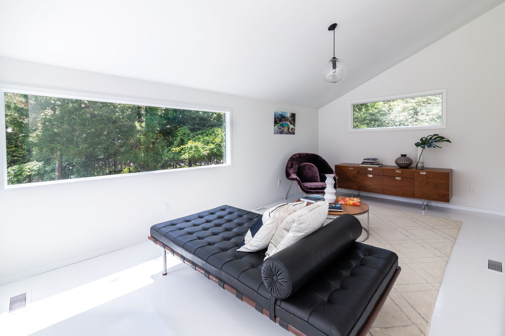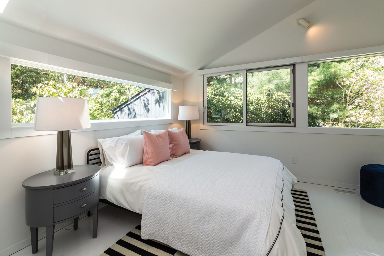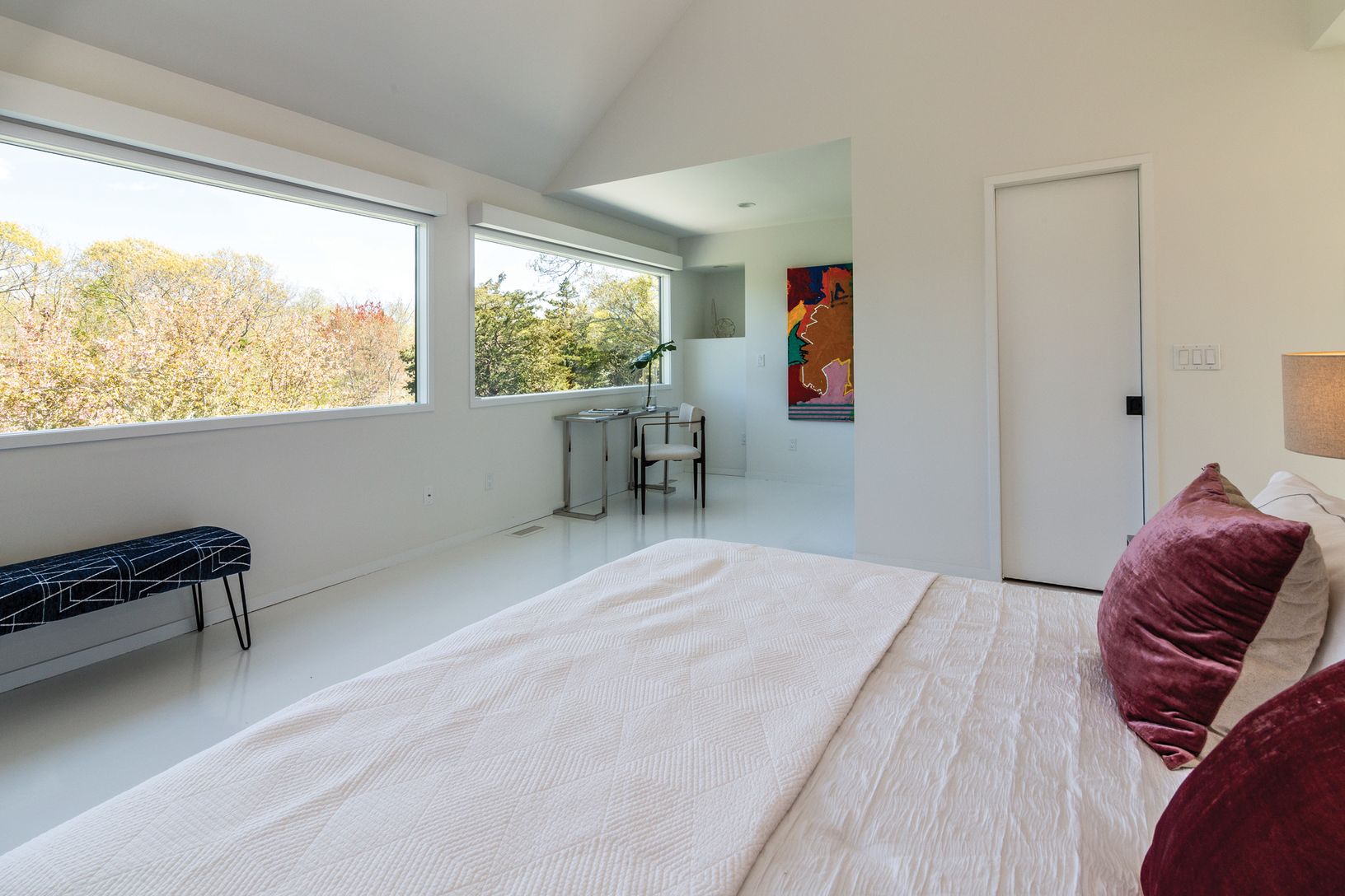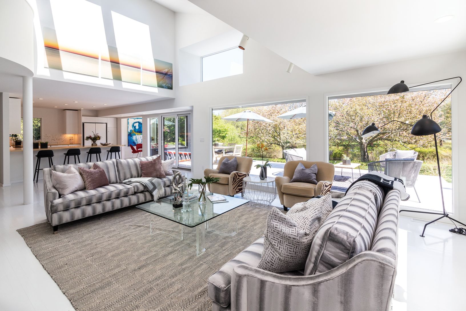 Escape to this completely rebuilt four bedroom, three and a half bath contemporary in Barnes Landing, with all new finishes inside and out. It's one of just two houses on bucolic Turtle Pond and just a block from one of the best beaches on Napeague Bay. Sparkling white interiors with large windows, glass doors and lots of skylights flood the house with natural light. Open living areas flow among the living room with huge windows and a fireplac