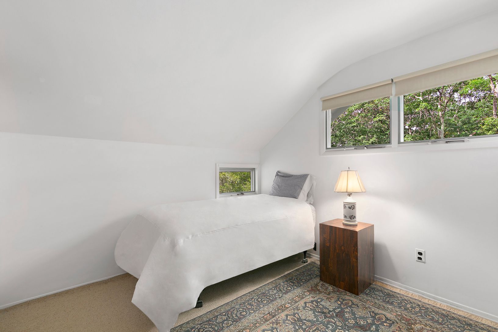 This light filled contemporary with vaulted ceilings, and open floor plan offers all the pleasures of East Hampton summer living. Featuring 4 bedrooms, 3 baths , includes a spacious master ensuite with a large walk in closet . This open floor plan allows abundant light to stream in from every turn. Surrounded by extensive decking and mature landscaping the exterior offers a heated gunite pool, brick patio area's for entertaining, an outdoor s