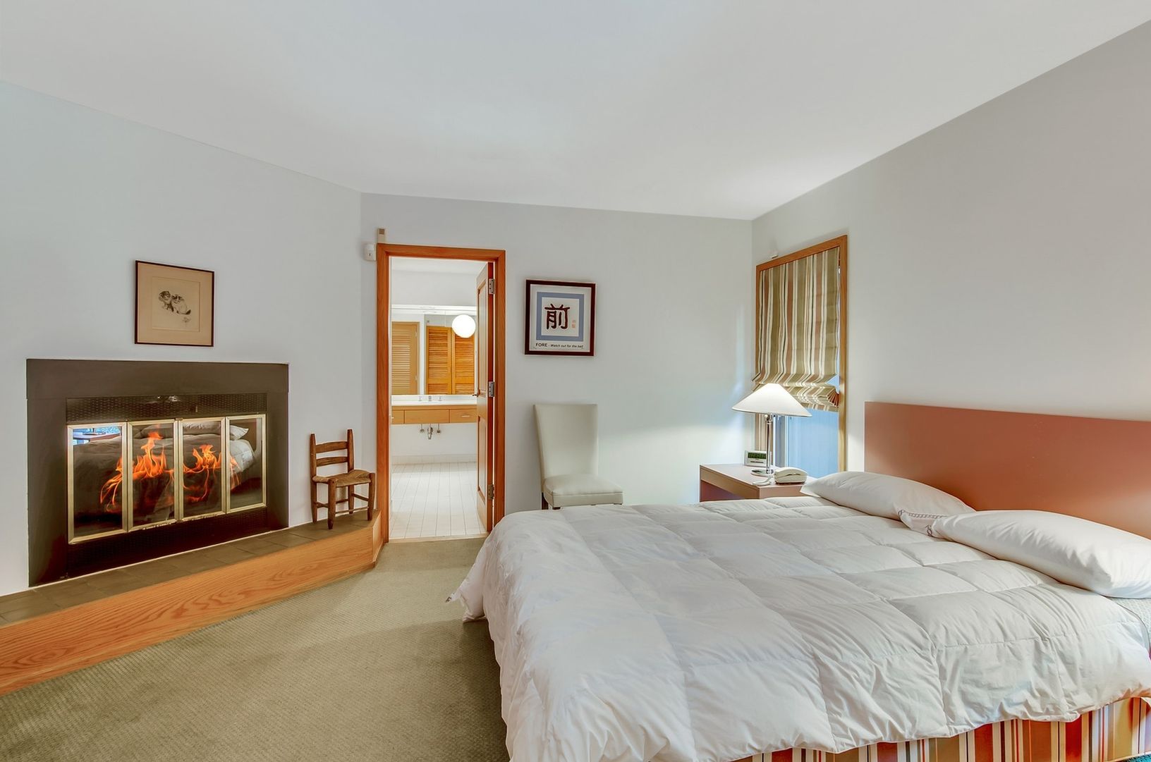 This end unit at Dune Alpin Farm has a lot of light with easy access to the Village of East Hampton. It features a recently renovated kitchen which is open to the dining area and living room, all with new tiled floors. The open spacious living room has a gas burning fireplace with easy access to a beautiful slate back patio overlooking an expansive lawn area with a short distance to one of the two swimming pools. Upstairs features a bedroom
