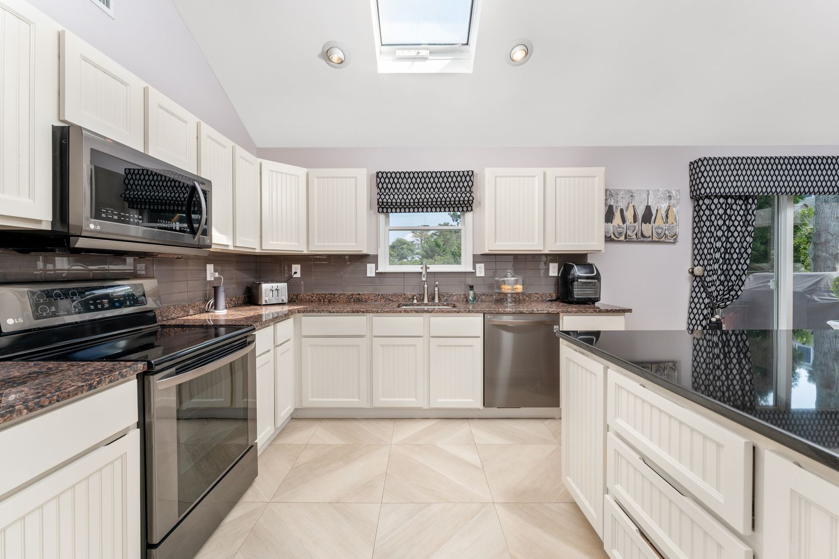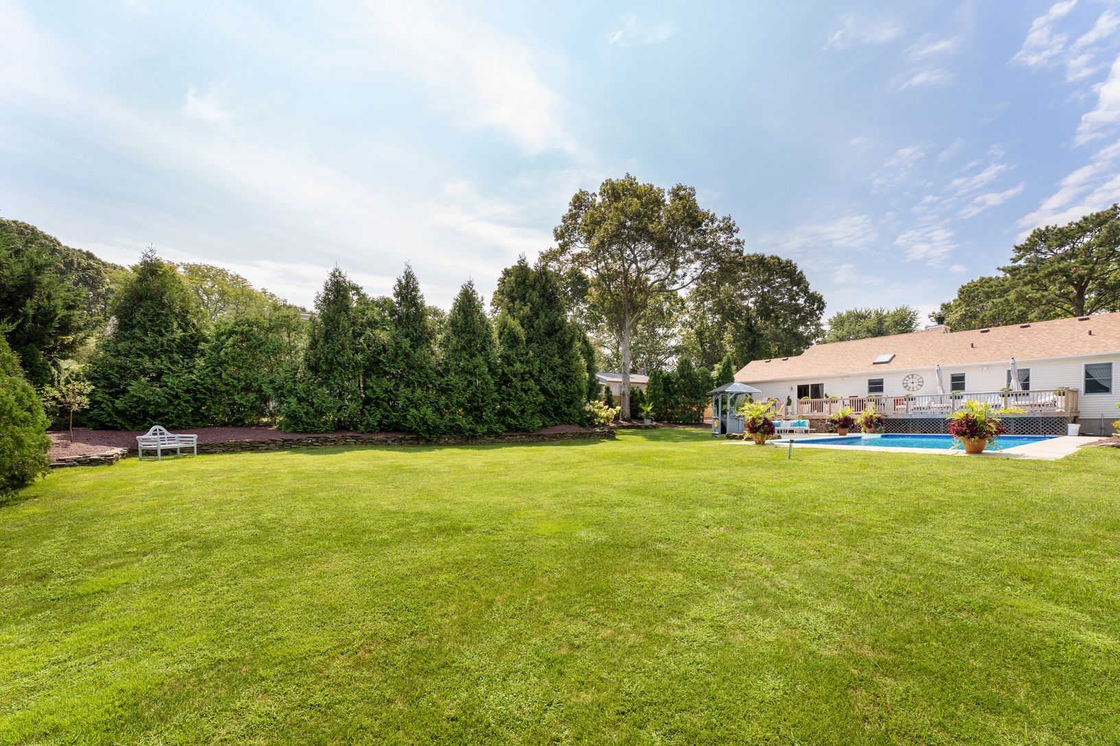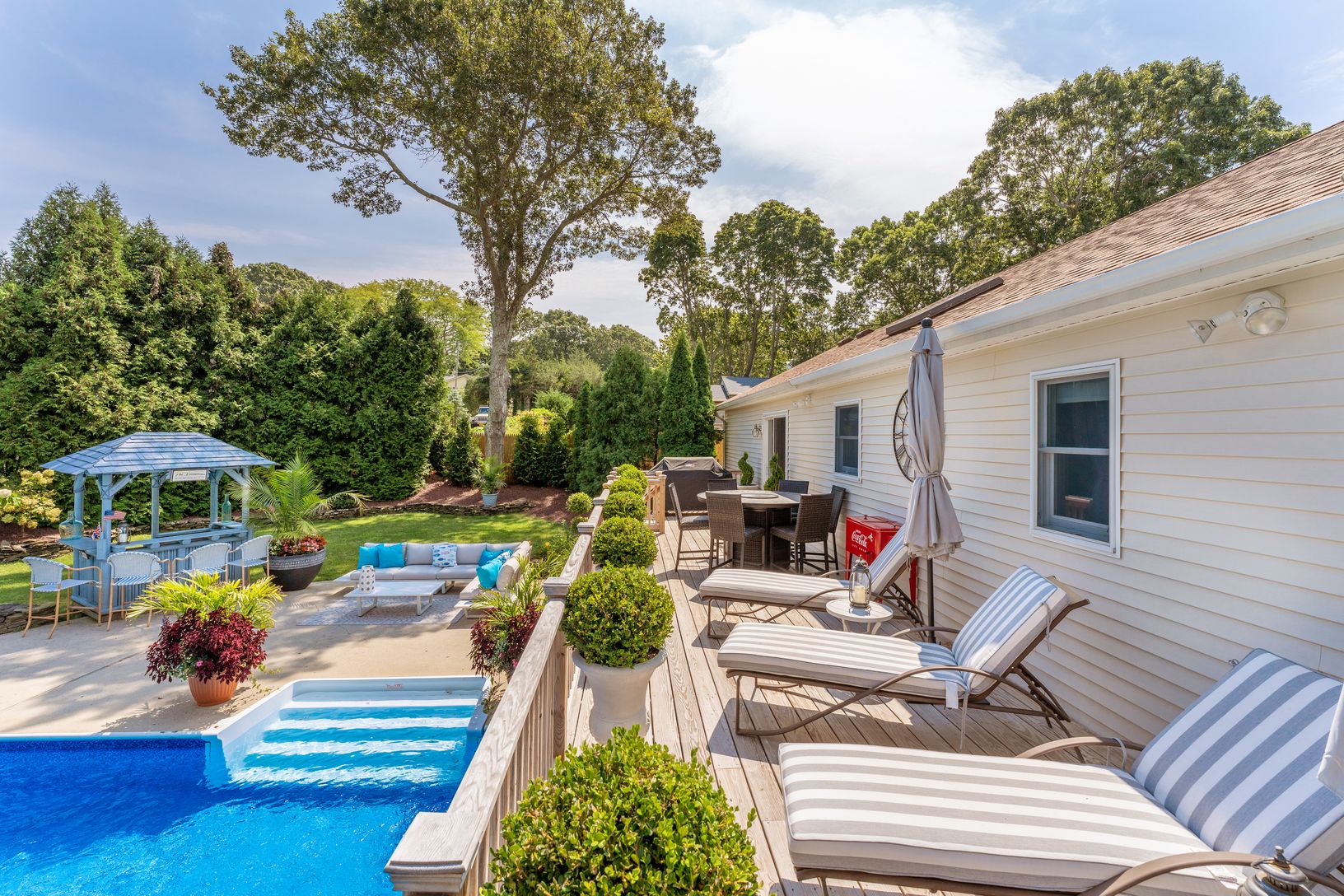 Beautiful One Story Home on .67 Private Beautifully Landscaped & Maintained Acres on Cul-de-sac. Cathedral Ceiling Spacious Living Room with Fireplace and Oak Floors Through Out. Large Skylit Eat-In Kitchen with Granite Countertops, Stainless Appliances, and granite Dining Area. Master Bedroom with en suite Private Full Bathroom. Two additional bedrooms and One Hallway Full Bathroom. Large Sundeck Overlooking Inground Pool. One Car At
