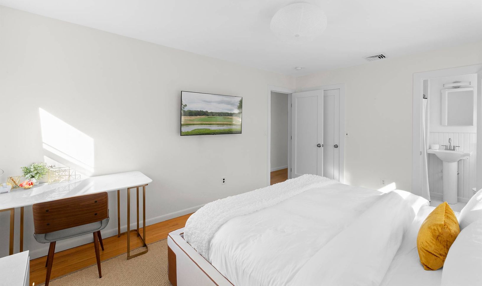 Spend the summer or off season at 2 Crescent Street, a newly renovated sanctuary overlooking a picturesque pond and Sag Harbor Cove. A boater's dream, a private dock across the cul-de-sec is included for easy access to the beautiful waters surrounding Sag Harbor. This bright and airy home boasts new furnishings and stylish decor throughout the living areas on two floors. Enter into the open concept living and dining area with deck access perfe