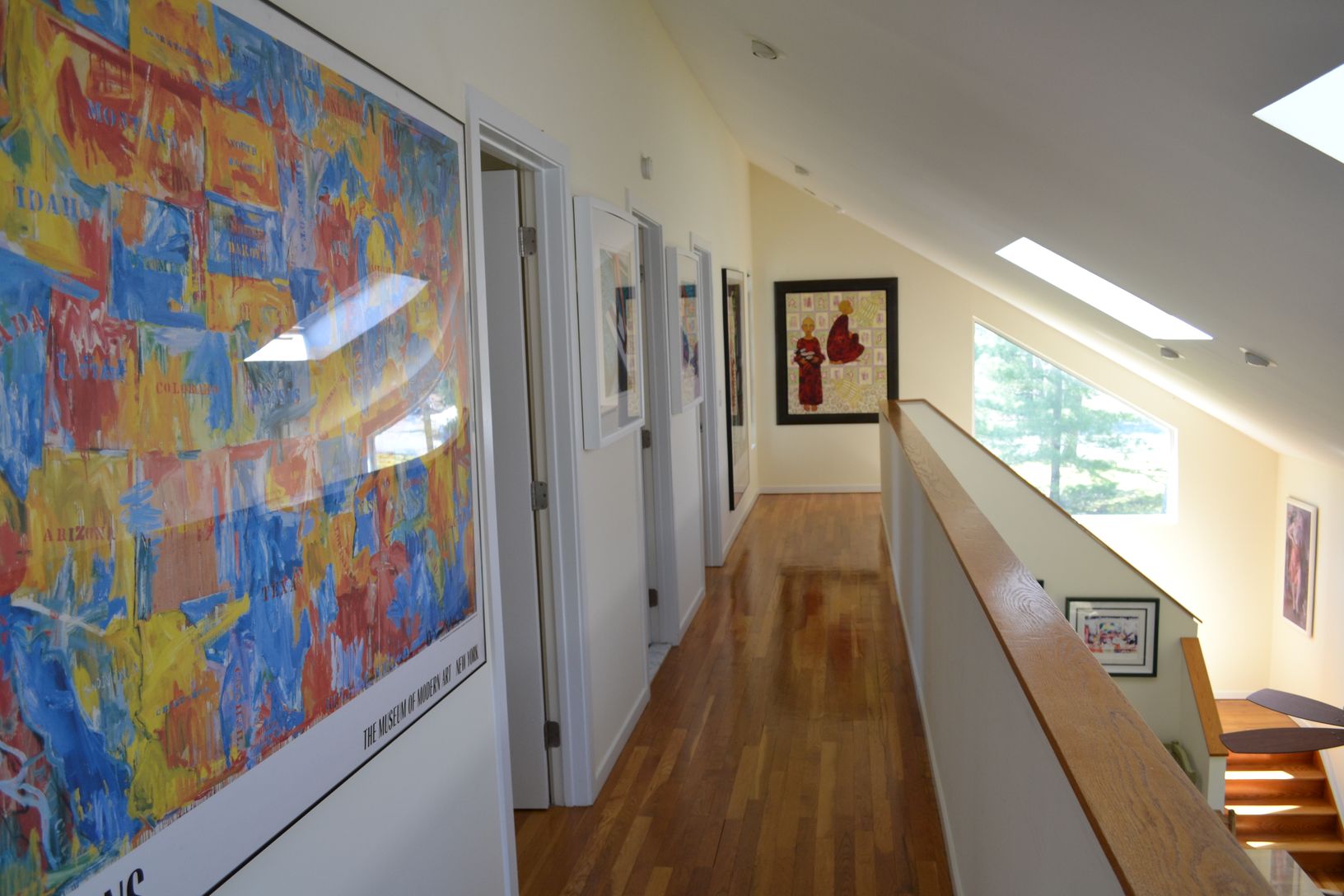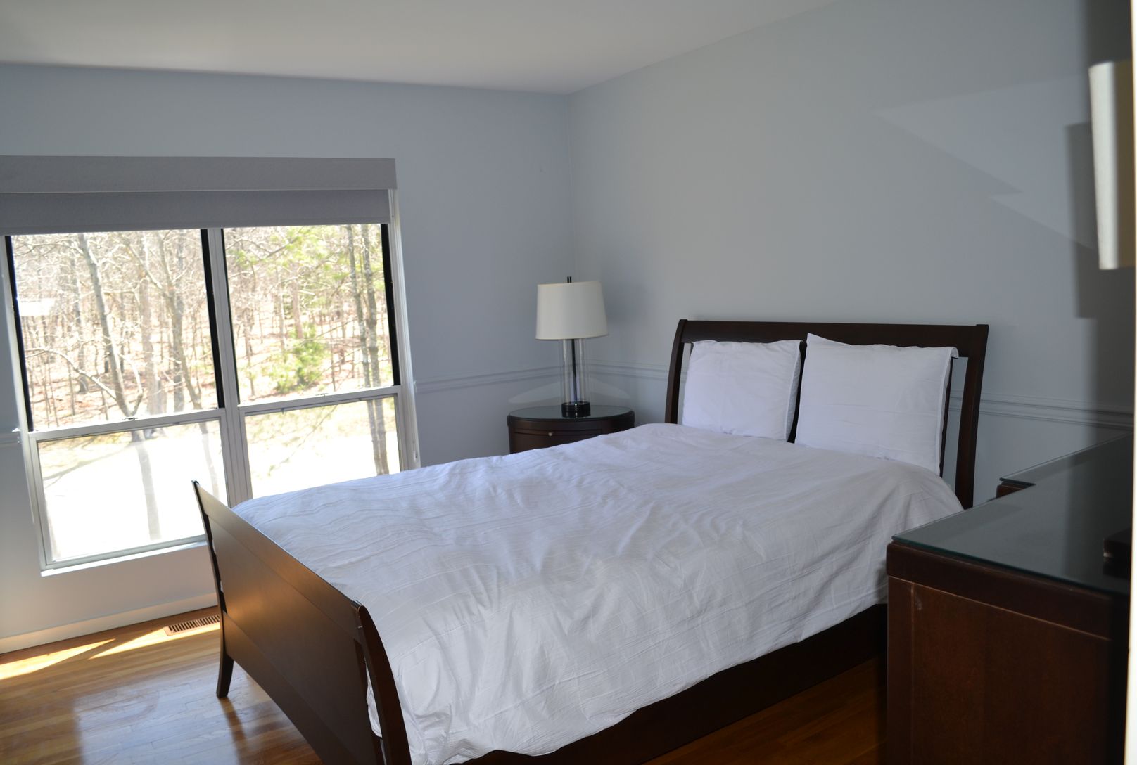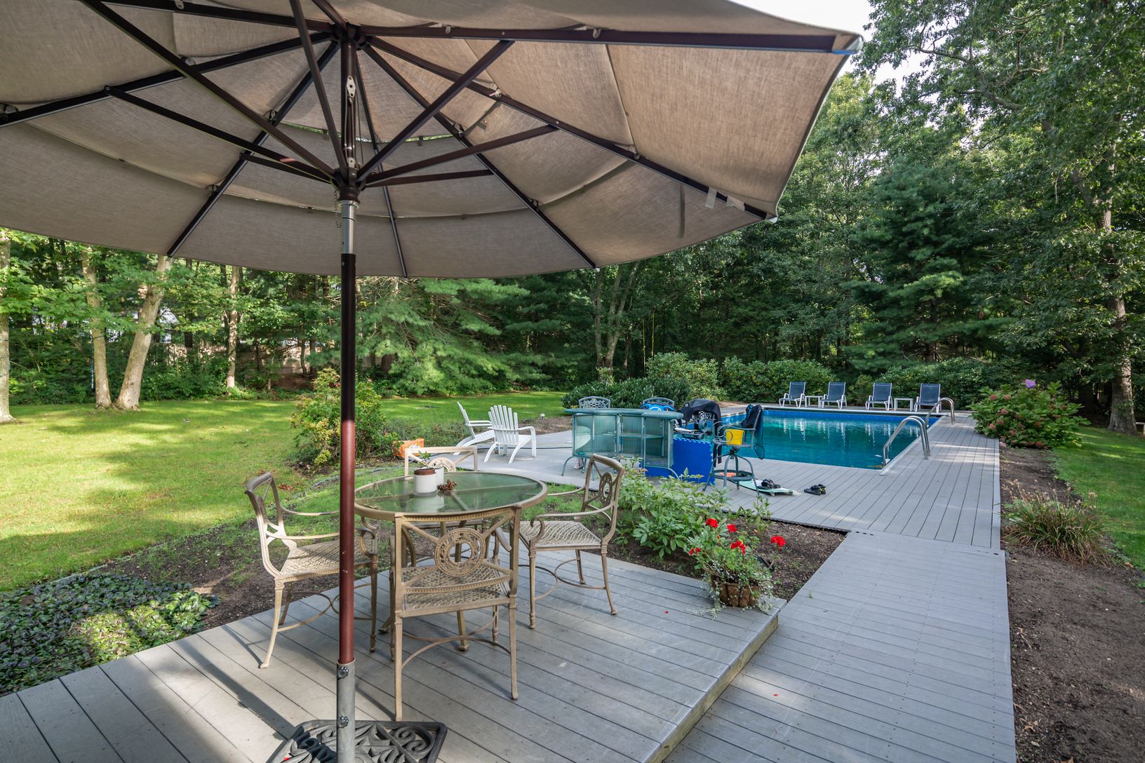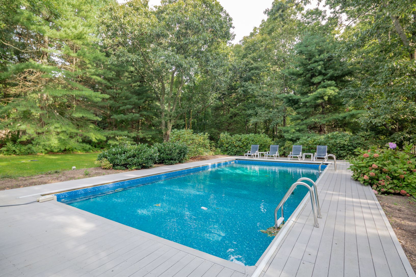 Here's the perfect home for year-round living or summer enjoyment! Sited on a beautifully landscaped 1+/- acre in the Northwest Woods that's convenient to East Hampton Village and bay beaches, this lovely property boasts 4 bedrooms, 2.5 baths, and much more. The living room and dining area with cathedral ceilings and skylights create a bright and airy space with wood burning fireplace and glass doors opening to the heated pool and entertainin