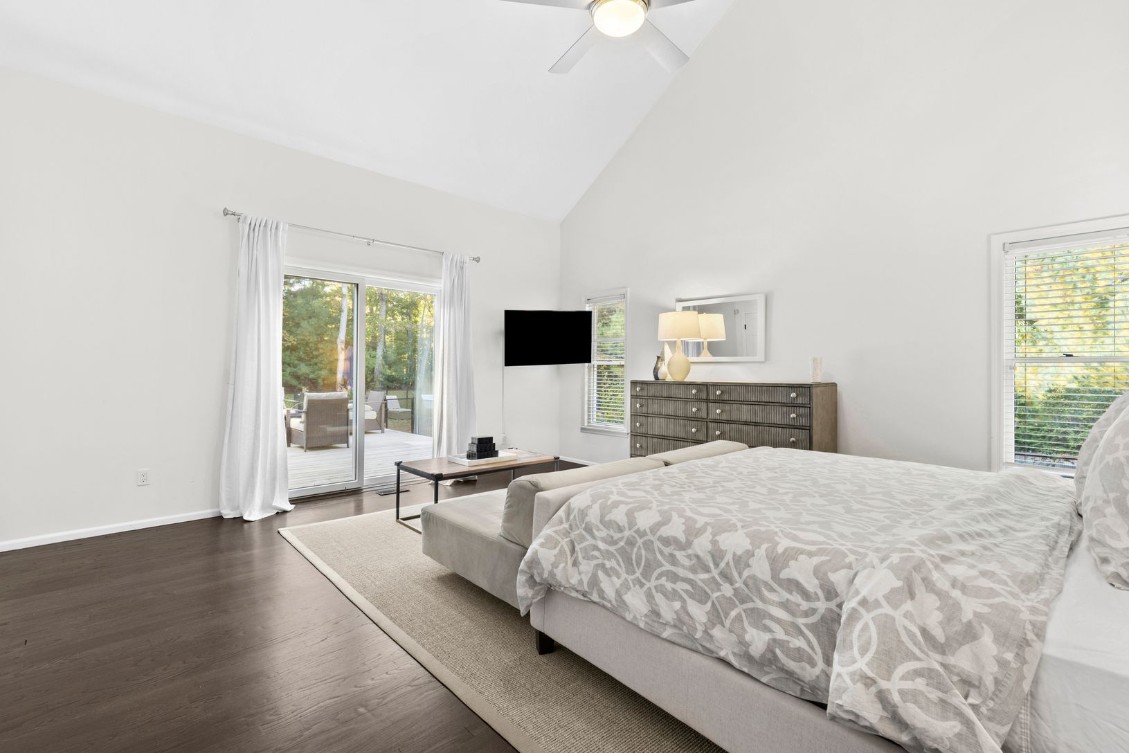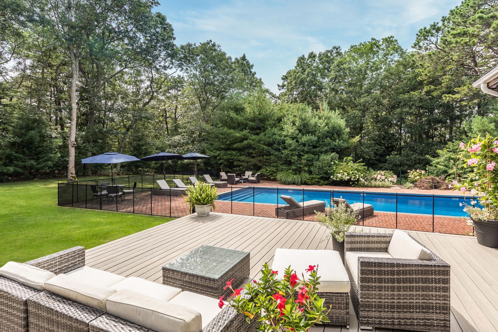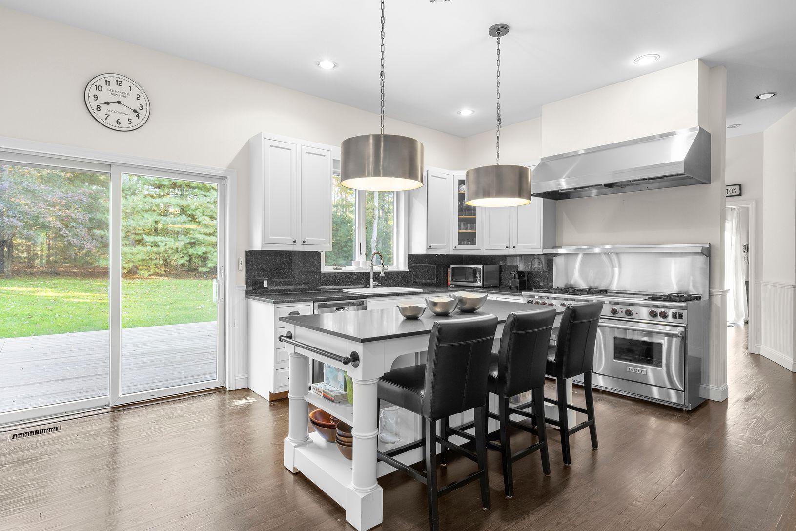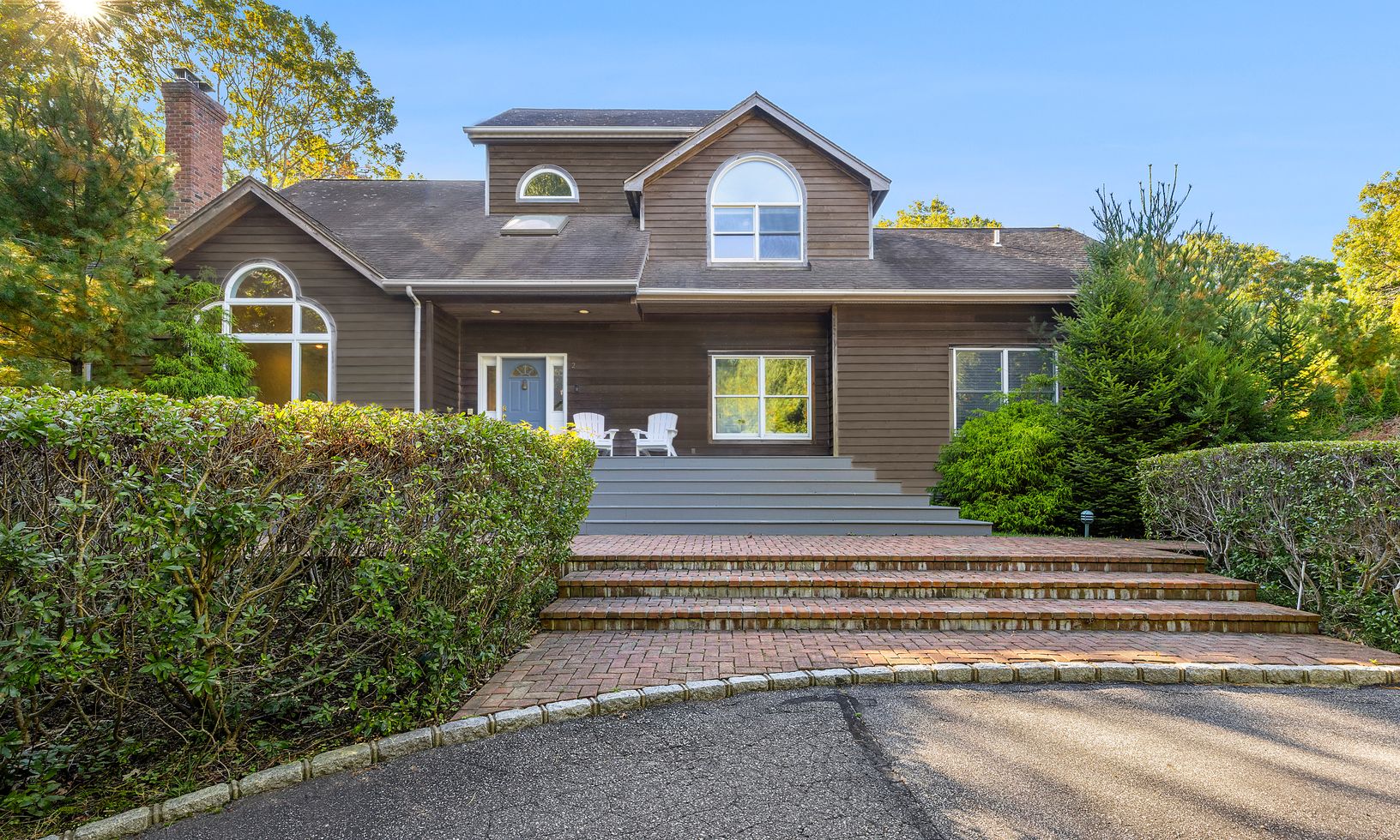 Set on over two acres in Northwest Harbor, 2 Dongan Way offers nearly 4,000 square feet of living space across its three levels. The sun-drenched first floor's open concept has an organic flow from the entryway, to the living room with its fireplace and soaring vaulted ceilings, through to the a large dining area. The bright kitchen just beyond offers professional-grade Wolf and Sub-Zero appliances and an island for informal dining. Off the ma
