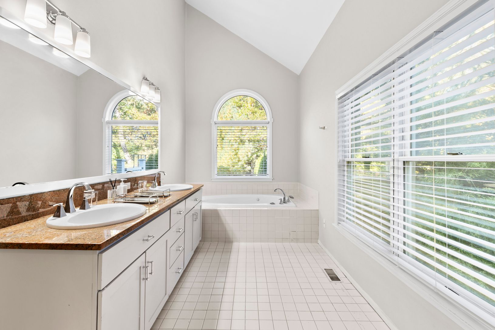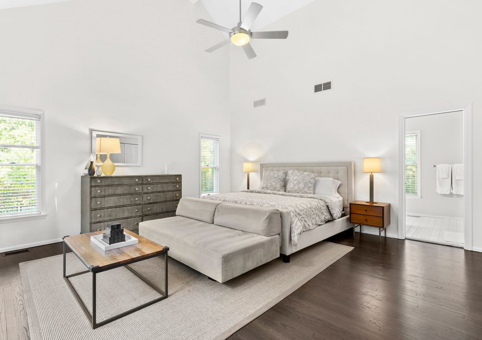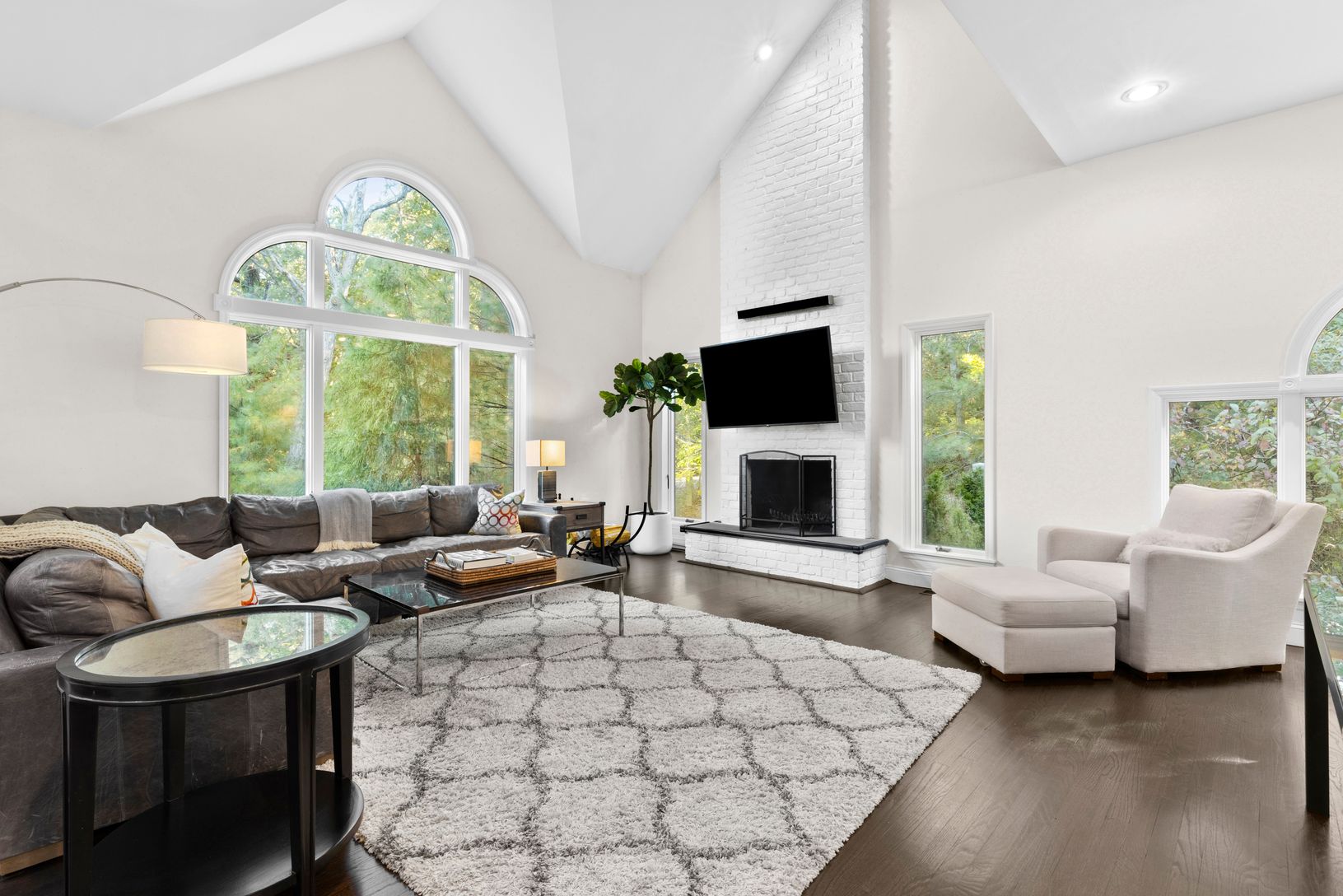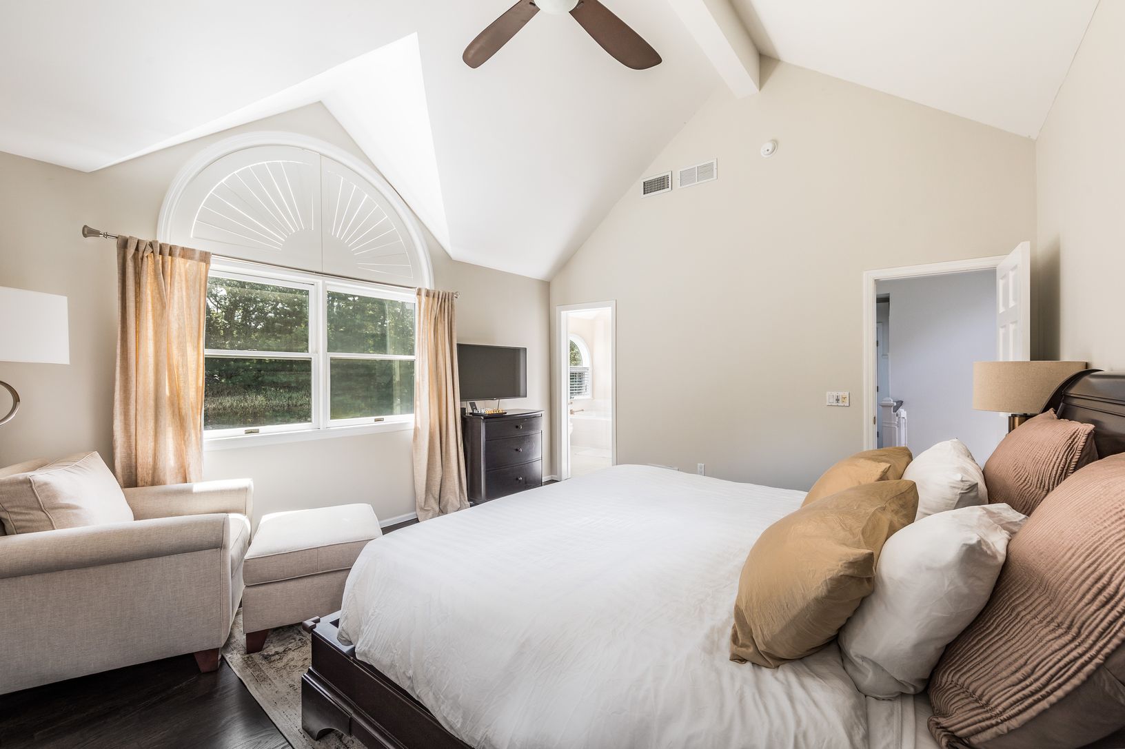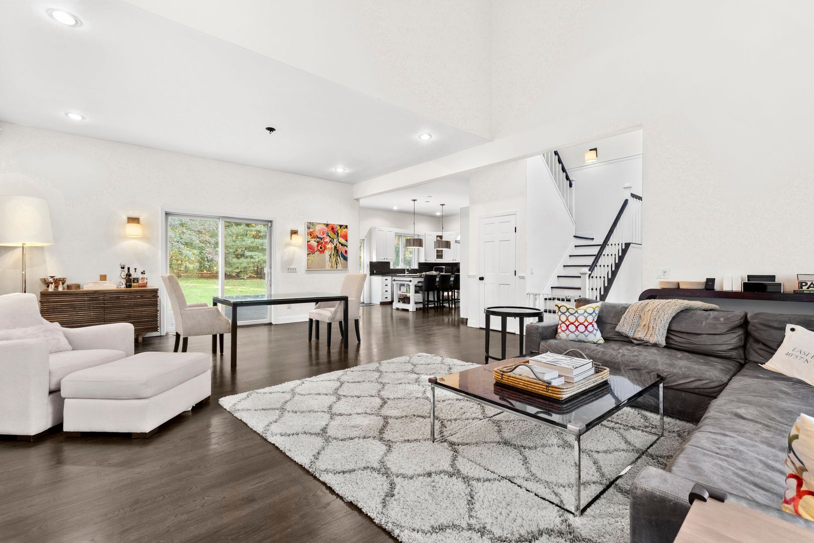 Set on over two acres in Northwest Harbor, 2 Dongan Way offers nearly 4,000 square feet of living space across its three levels. The sun-drenched first floor's open concept has an organic flow from the entryway, to the living room with its fireplace and soaring vaulted ceilings, through to the a large dining area. The bright kitchen just beyond offers professional-grade Wolf and Sub-Zero appliances and an island for informal dining. Off the ma