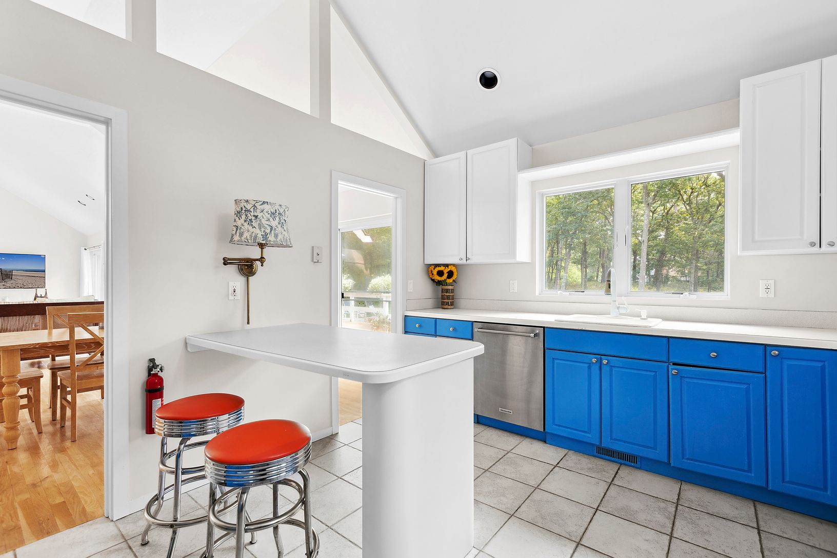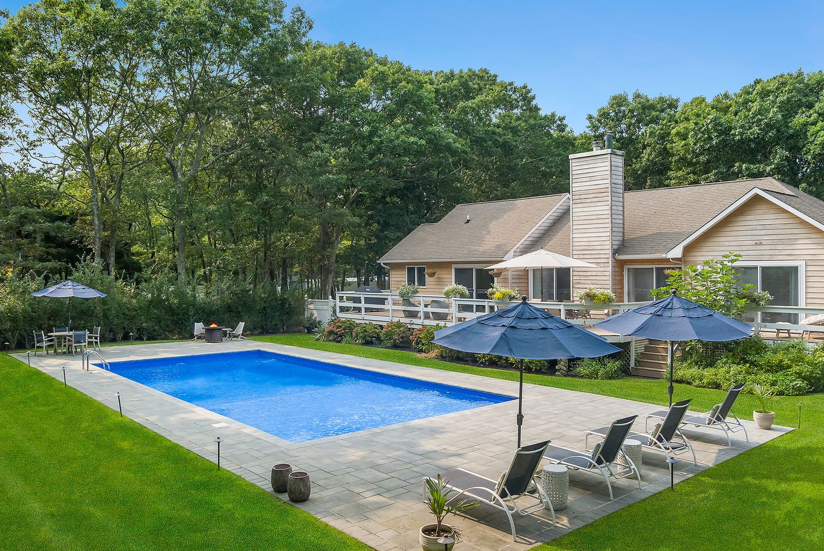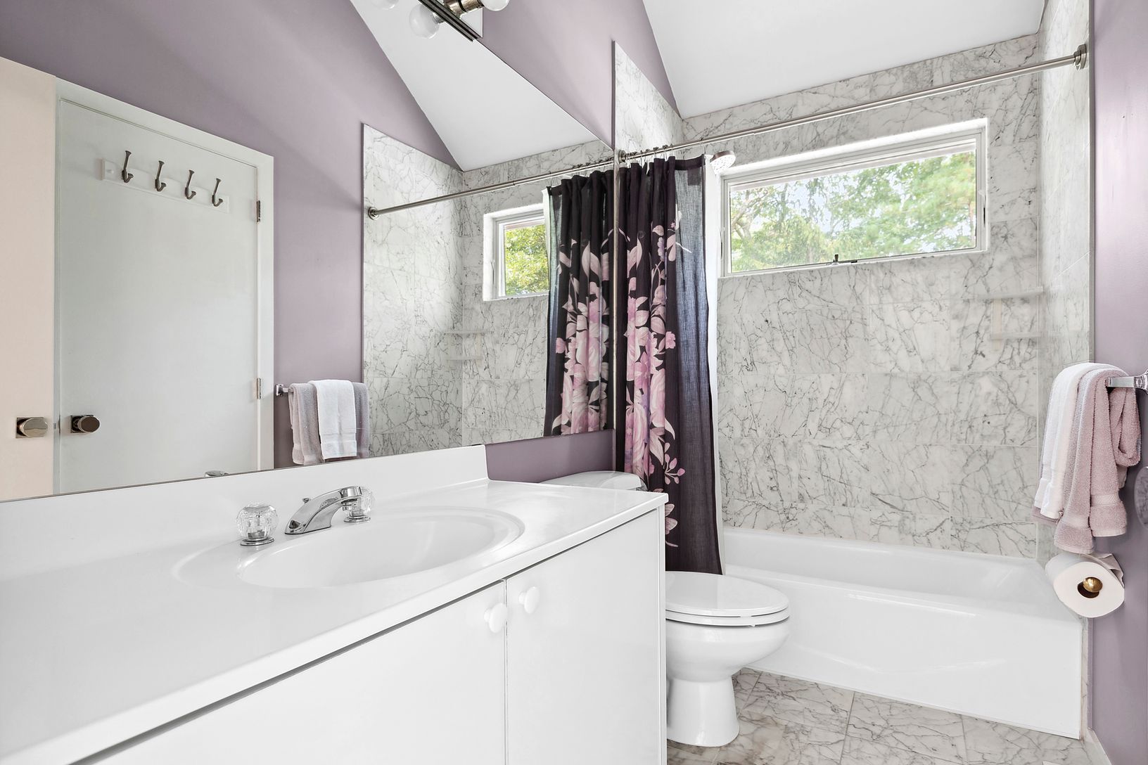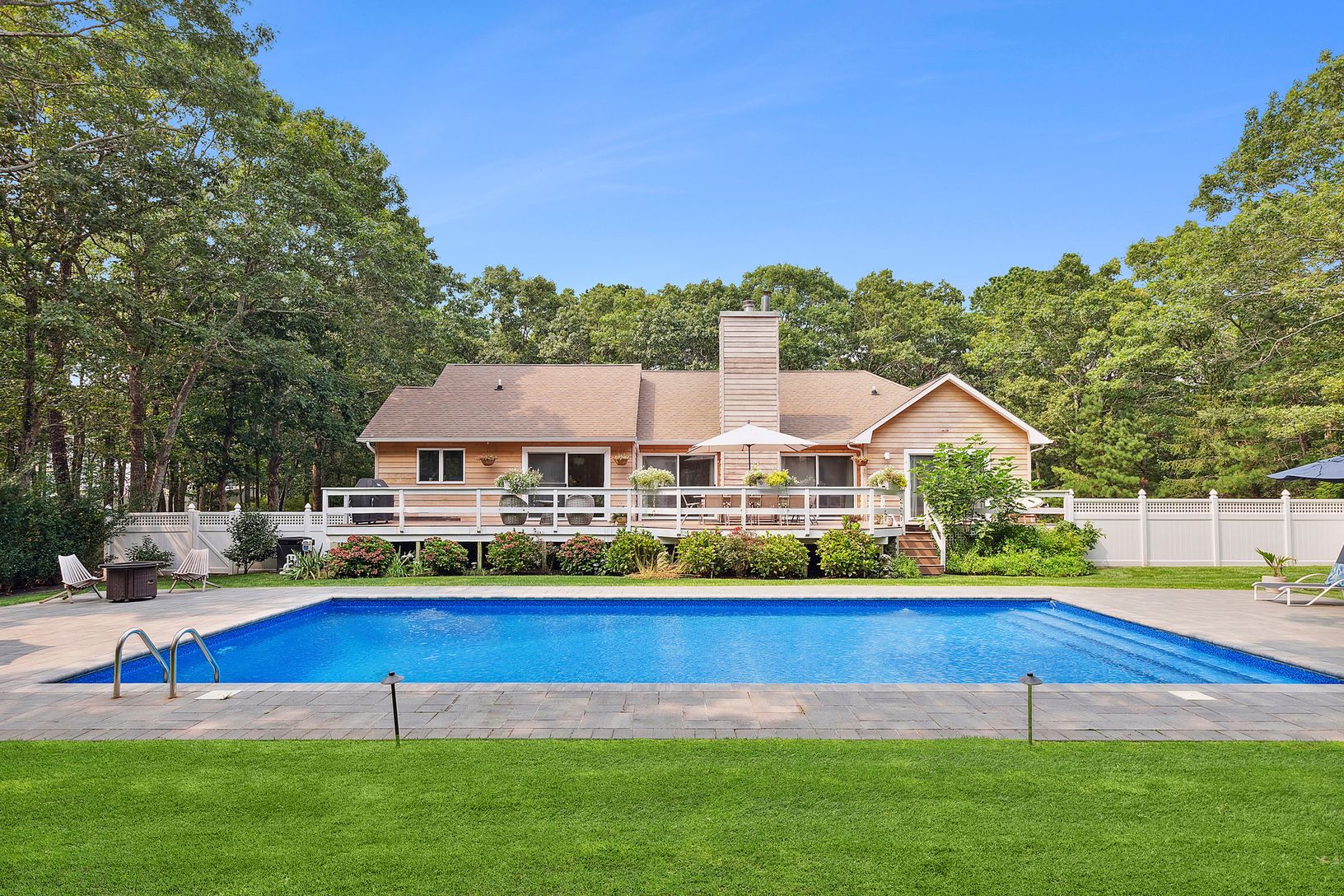 From the vast circular driveway, a charming front porch greets guests. Through the double doors, you are introduced to a great room with soaring 16-foot ceilings and skylights. A wood-burning fireplace flanked by glass sliders c