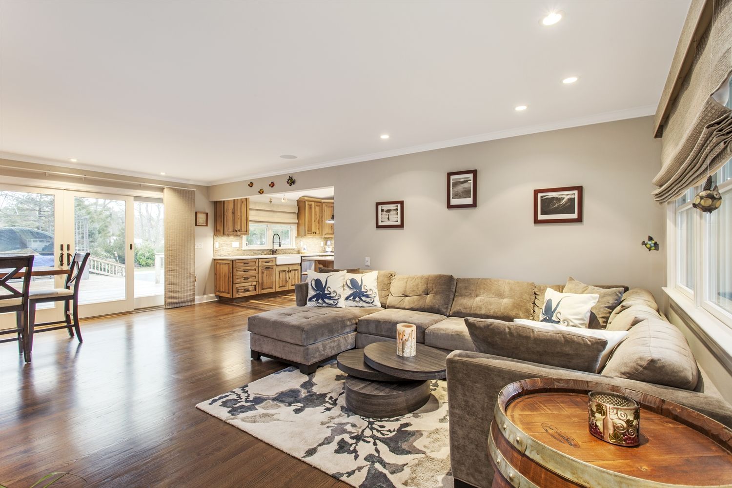 Stunning expanded Cape is completely renovated and move in ready! Boasting a beautiful open concept floor plan with Chef's kitchen, dining room, and living room. Home features a master bedroom with huge walk-in closet, two spacious guest bedrooms, in-ground pool on beautifully manicured and maintained grounds, two car detached garage with loft space, and full finished basement,
