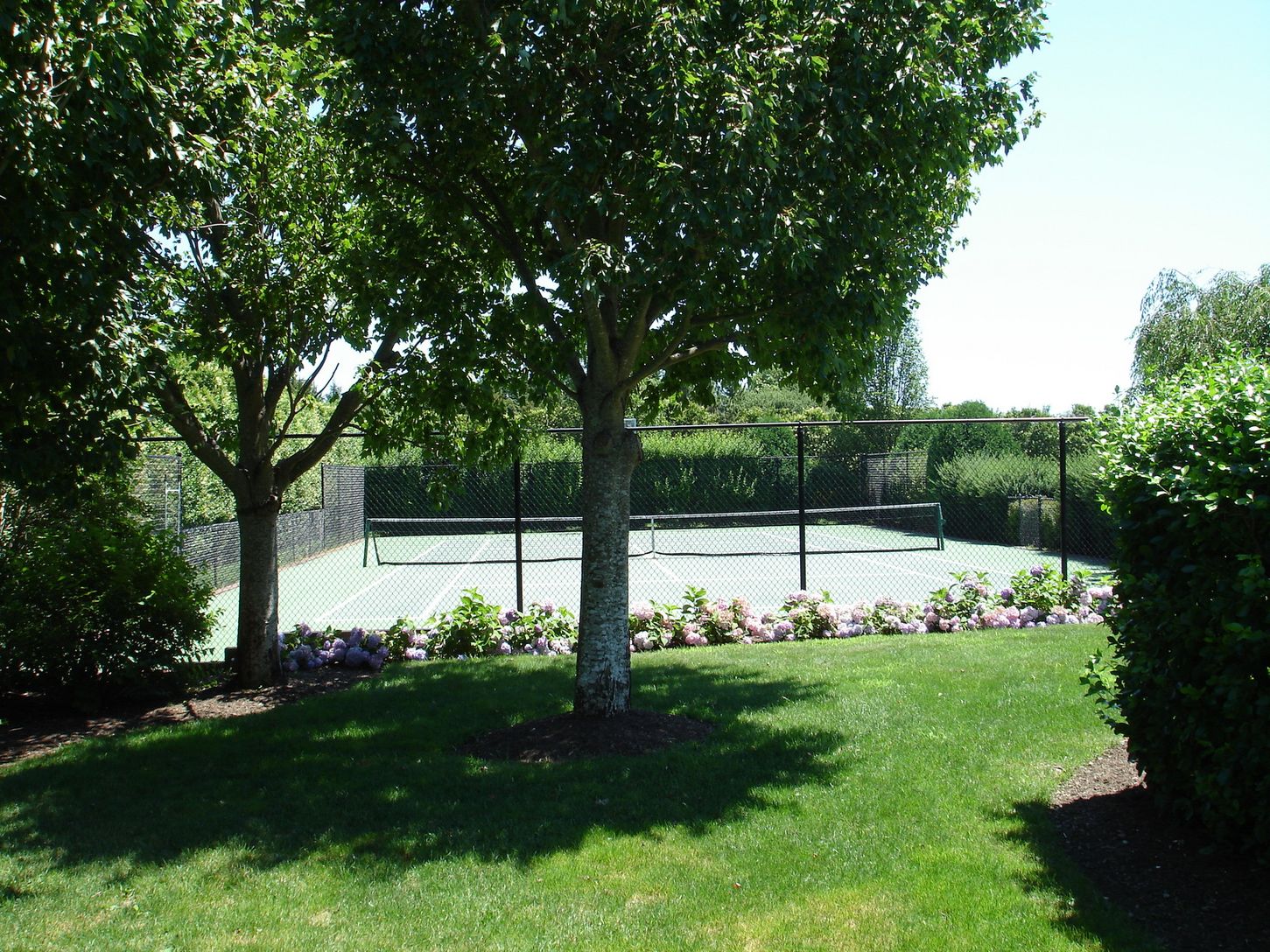 Beautifully furnished, this home is an oasis with heated pool and freshly resurfaced tennis court in desirable South of the Highway location. Open living areas with fireplace flowing into the dining area, separate breakfast area, bright eat-in kitchen open to the living spaces. Five relaxing, well appointed bedrooms and four and 1/2 baths, 2 master suites with private bath on each level. Inground, heated swimming pool surrounded by decking,
