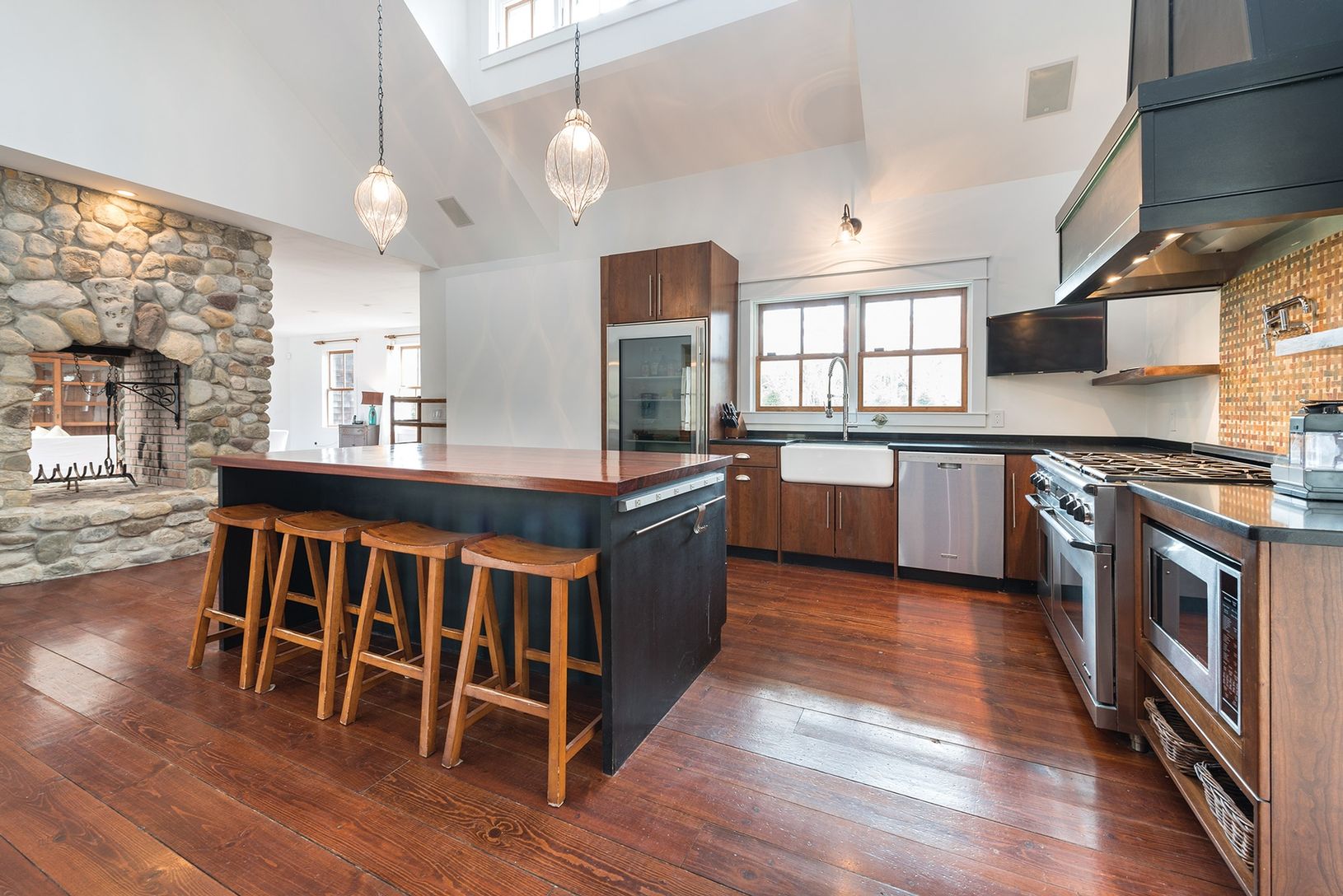 This open plan traditional home is located on 1.9+/- acres in Hidden Ponds, an established upscale subdivision of fine homes in the Northwest Woods of East Hampton about five miles to East Hampton Village. There is one access road into the community and no through traffic, so the streets are very quiet. The home offers large, gracious rooms for easy living and entertaining. The living room has a stone masonry fireplace and French doors to the