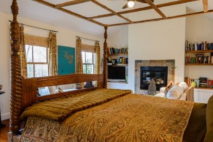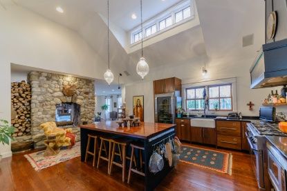 This 4,000 sq. ft. Traditional is a masterful mix of warm rustic finishes and modern luxurious amenities. Elements of its 2-acre natural landscape inspired the custom interior including a massive double-sided stone fireplace opening to the living room and state-of-the-art kitchen. Equipped with top-line appliances, unique finishes and a massive center island, the spacious gourmet kitchen is one of many inviting gathering places. The kitchen