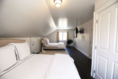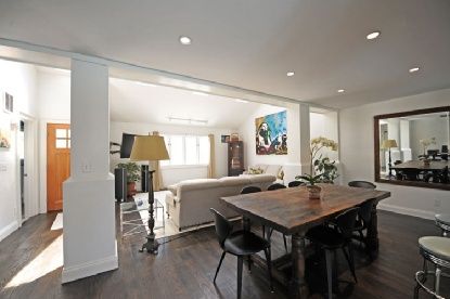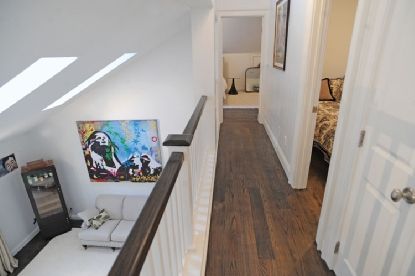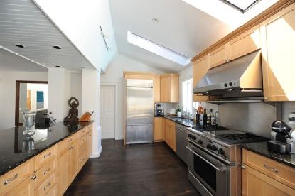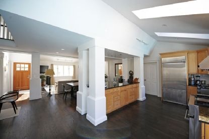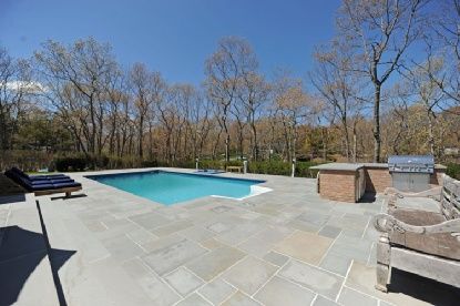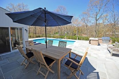 This trendy 5 bedroom, 4 and 1-half bath contemporary home was recently renovated for pure comfort - including new hardwood flooring, Kohler fixtures, tumbled marbled floors in baths & steam shower in ground-floor master, plus professional gas range in the open kitchen. Exterior recently painted. Large sun deck surrounds the pool. Privacy on this wooded lot, just up a short hill from Three Mile Harbor waterfront.