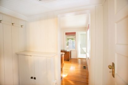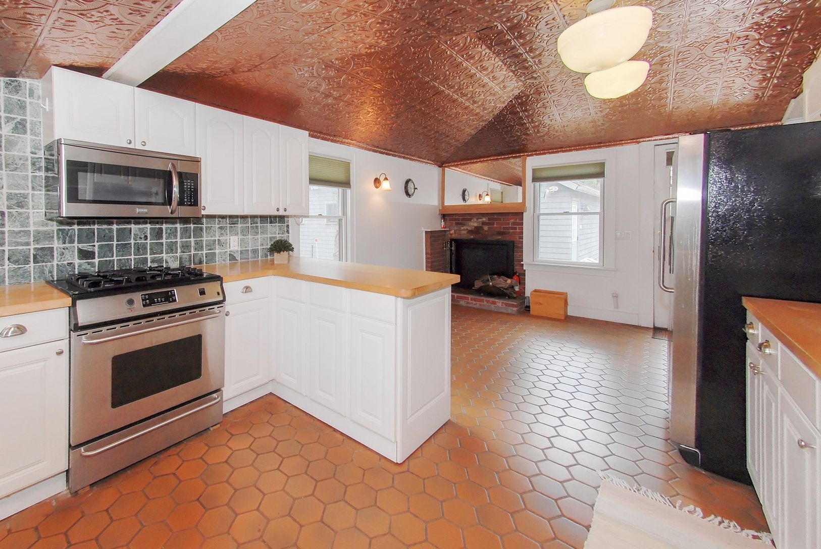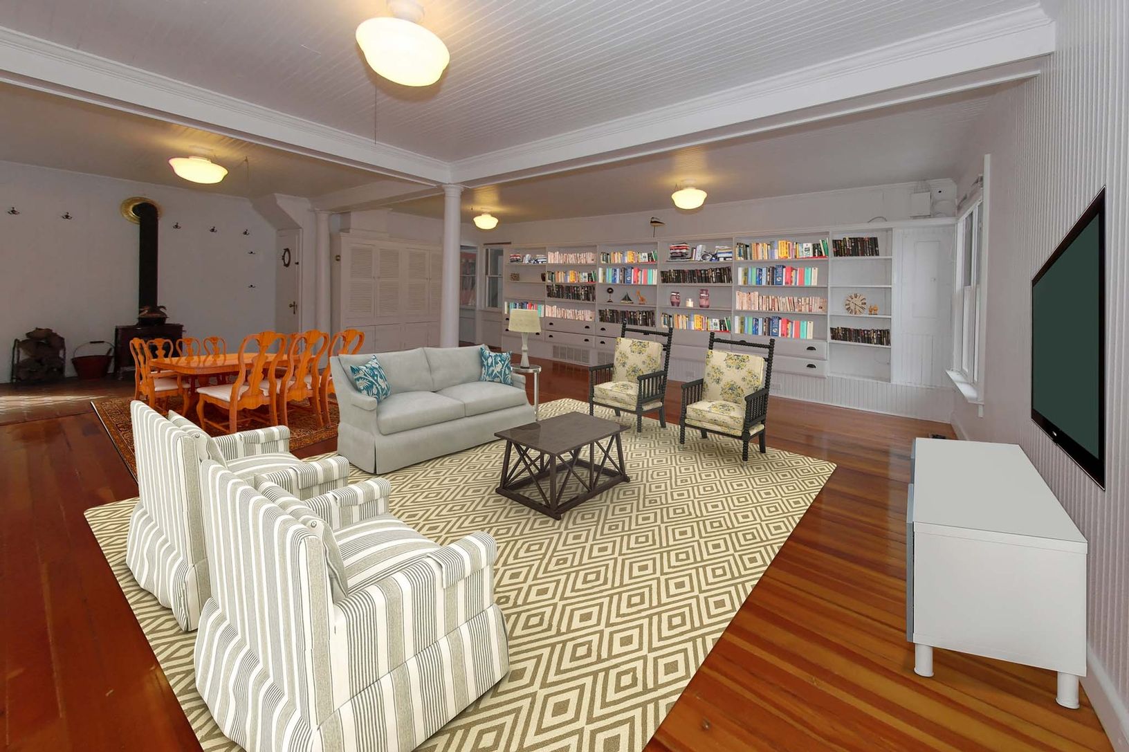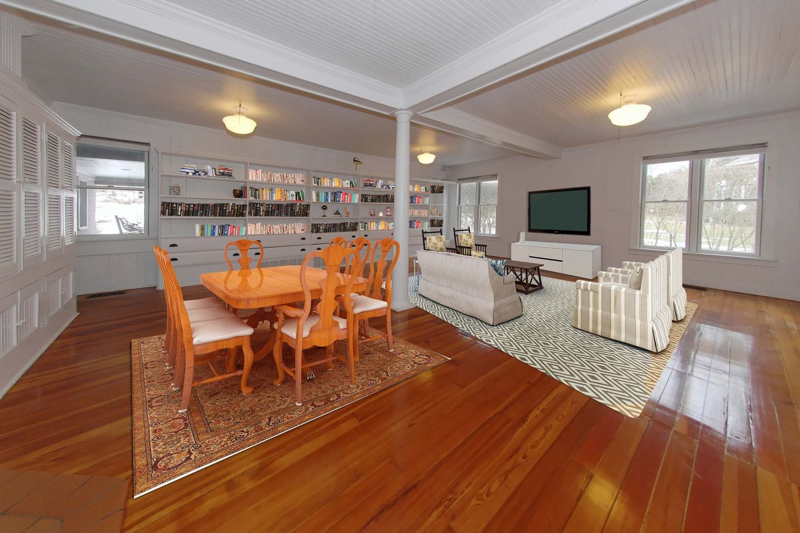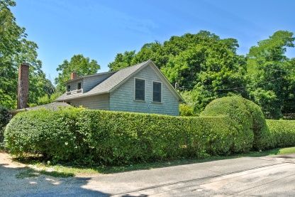 Located up the lane from Coecles Harbor, this exceptionally charming, cedar shingled two-story farmhouse, built in 1889, at the turn of the century was the bustling Cartwright General Store. More recently it has been the studio for noted artist Alan Shields and a doctor's office. Tucked behind established tall privet within landscaped grounds, a stone path leads to the rocking chair porch where the original Cartwright family greeted their gue