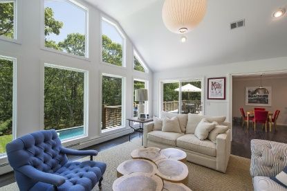 Rental Registration #: 18-600 Featuring five bedroom and three and a half baths this East Hampton home has double height cathedral ceiling wonderfully decorated for anyone's style. With an open floor plan the main living area features large windows, entertainment desk, large master bedroom on the first level with private deck access. Situated on a quiet cul-de-sac nestled in between Sag Harbor and East Hampton its close to both ocean and bay b