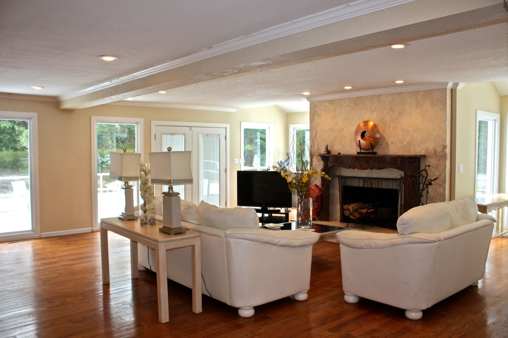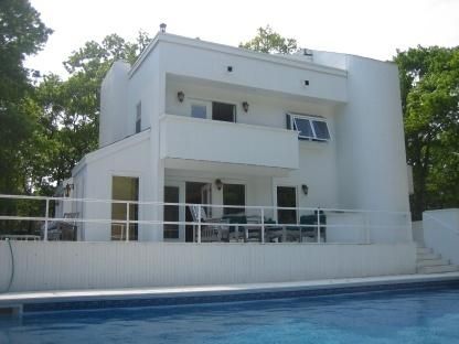 This beautiful contemporary home is located in private, tree-filled section of East Hampton but is just minutes from the village and ocean beaches. The large property has a clay surface tennis court, large heated pool (with pool house) and extensive decking. Walk in and find an open floor plan, hardwood floors, four nicely sized bedrooms, a sauna, and a large finished basement. Past the white gates, the house has dramatic entrance with its lar