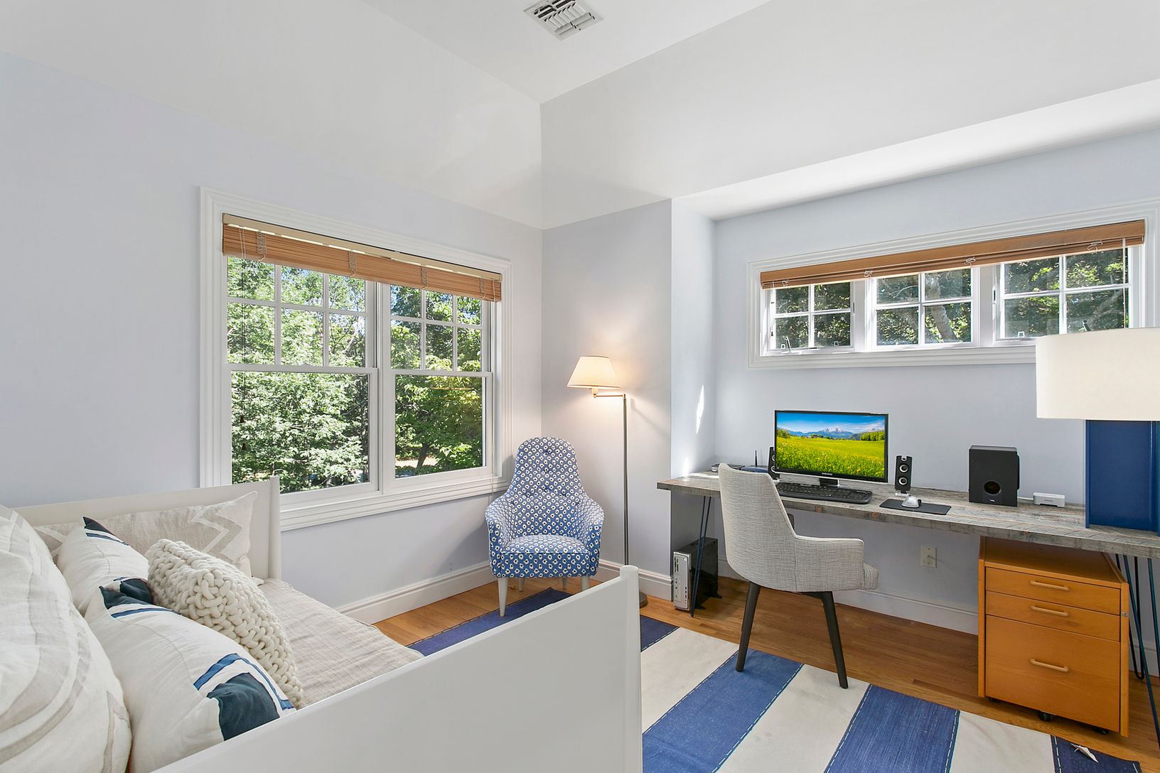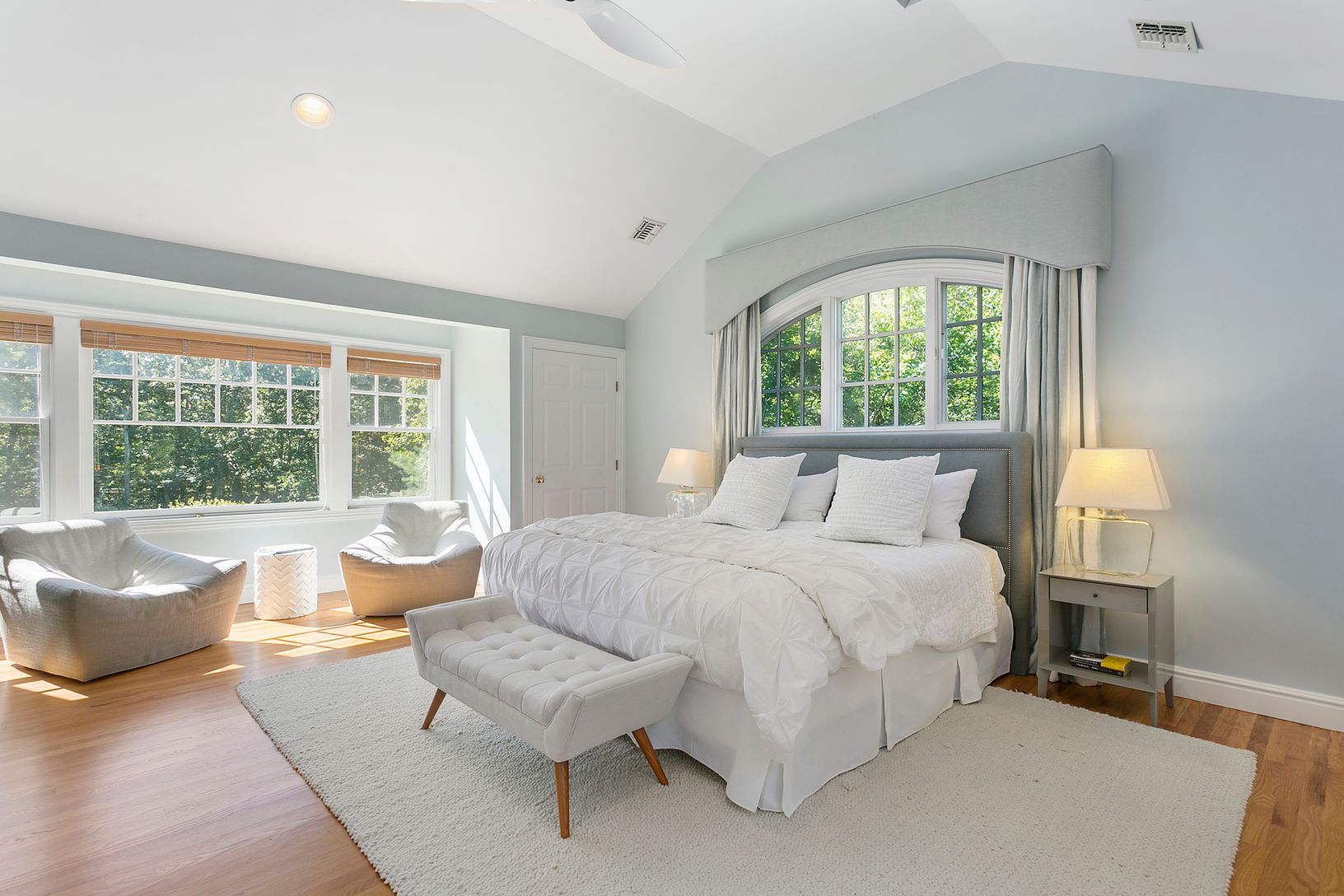 Within steps to a beautiful bay beach lies this 5 bedroom, 5.5 bath gambrel traditional. Offering living room with vaulted ceiling and fireplace, separate dining room and gourmet kitchen, this home is ideal for entertaining, both inside and out. The exterior features 1.7 acres of lush landscaping and rolling lawn accompanied by heated pool with brick surround. Additional amenities include large master suite with separate sitting area and firep