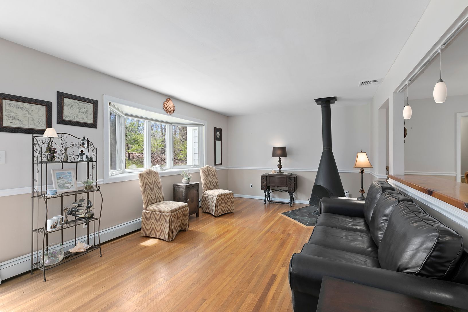 Located at the end of a quiet cul-de-sac and set on a half-acre, this quintessential Springs cottage provides privacy, a comfortable home, and space for expansion if so desired. With 1,400 square feet +/- of living space situated on one level, there are three bedrooms with a bonus room currently being used as a den that could easily work for overflow, an office, etc., There is one full and one half bathroom, and a sunny open living room with f