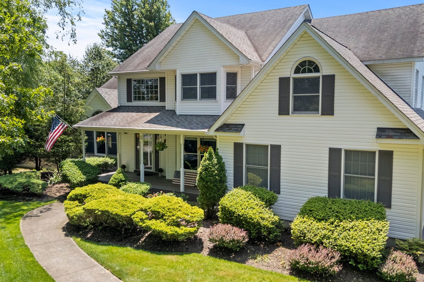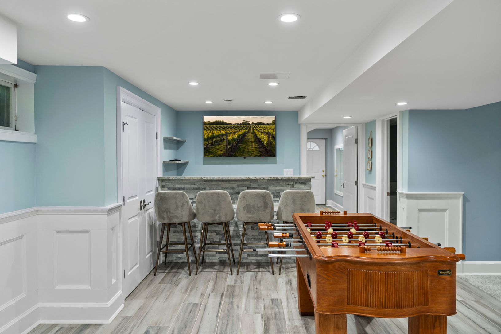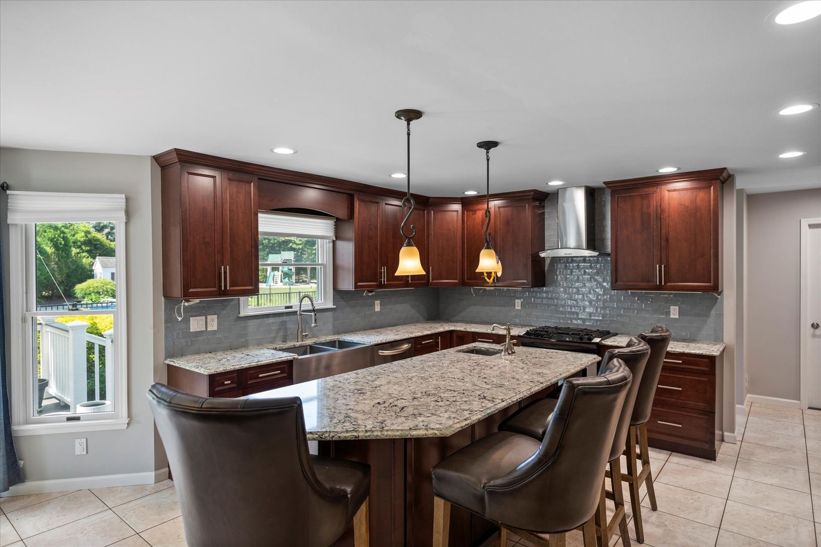 Welcome to this exceptional 5-bedroom, 4.5-bathroom residence nestled on a full acre in the heart of Manorville. Thoughtfully designed for both everyday living and elevated entertaining, this home offers over 4,000 sq ft of beautifully finished space—including a fully finished lower level and a backyard retreat that feels like a private resort. The first floor welcomes you with a classic front porch, a sun-drenched living room, a cozy den with