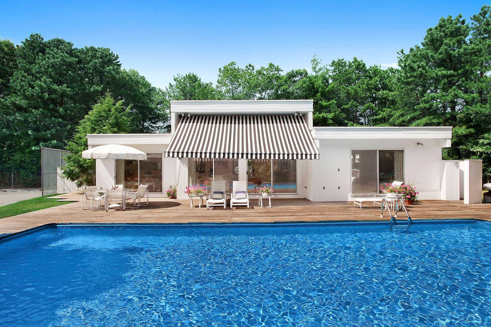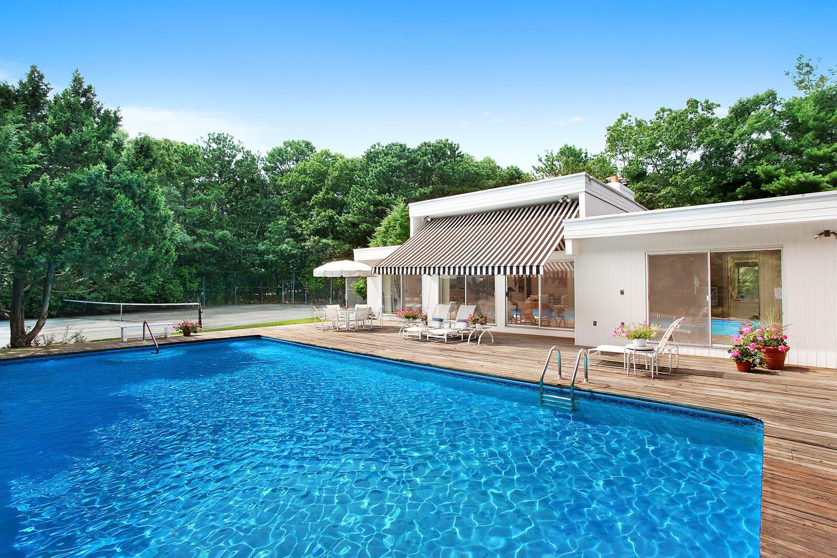 Easy beach living in the heart of the Quogue village, this four bedroom contemporary stretches across one privately wooded acre. Spectacular karma circulates throughout the spacious entertaining areas from the living room with wood burning fireplace, immaculate kitchen and dining room all of which overlook the picturesque heated pool and tennis court. Just a short distance from the village beaches, and only a 70 mile commute from Manhattan ma