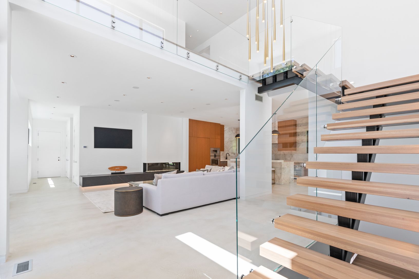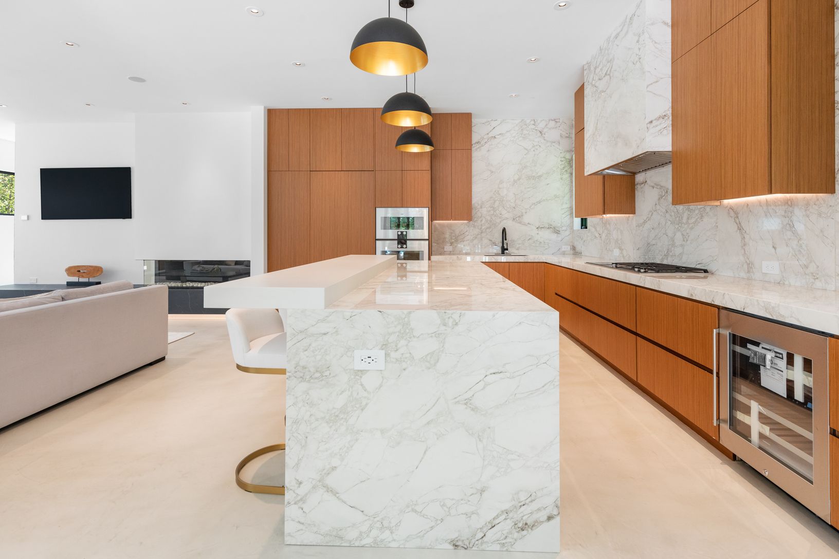 This stunning 6,800 +/-sqft has 6 Bedrooms, 7.5 Bathrooms situated on just shy of 2 acres! This custom build spared no details, first greeting all with mahogany wood accents as they pull up to property. Upon entering the double height entry foyer one can flow through the home noticing ceiling heights of up to 13 feet, never lower than 9 feet anywhere on the property! The marble covered kitchen has a 5x10 island with breakfast bar, Gaggenau
