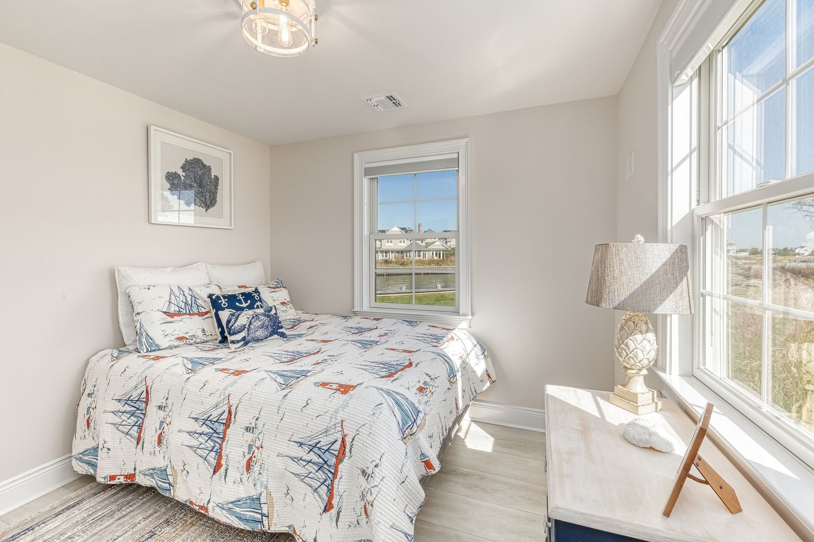 Welcome to your exclusive waterfront retreat in the world-renowned Hamptons, where luxury, tranquility, and coastal living converge. Wake up to the sight and sound of the bay. The expansive windows throughout the home frame panoramic water views that stretch as far as the eye. The interior exudes coastal charm and casual elegance. The open living and dining areas flow seamlessly, creating a welcoming space for gatherings and relaxation. A fire
