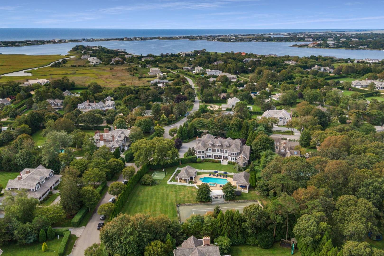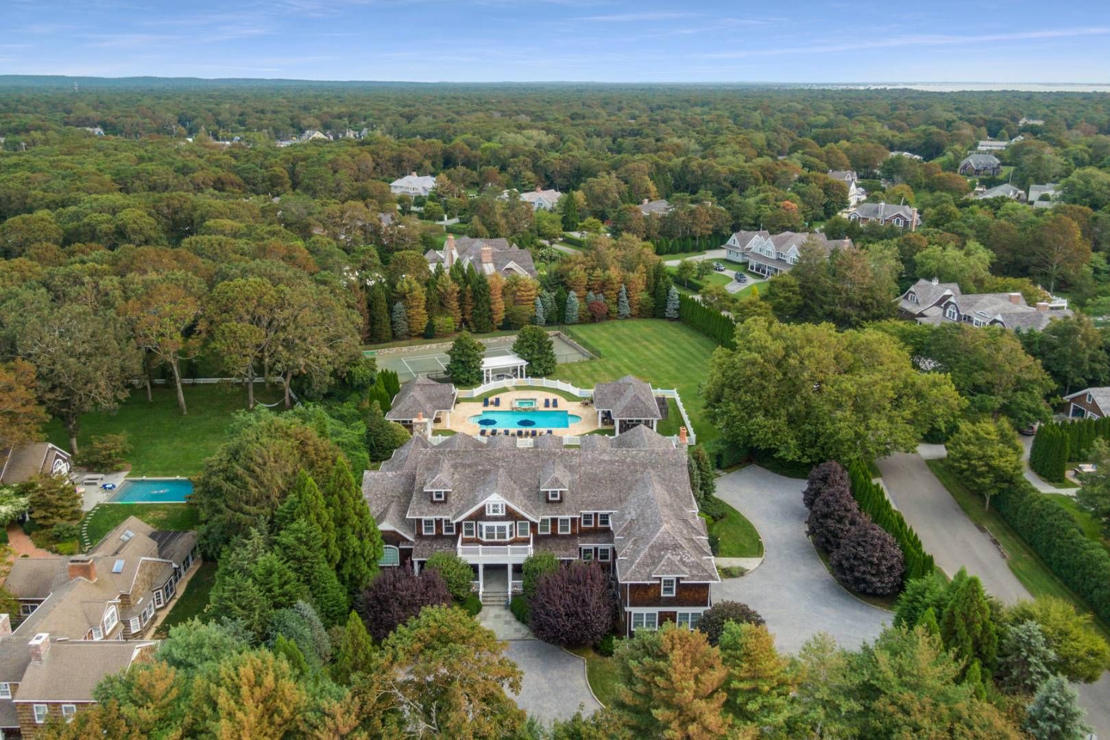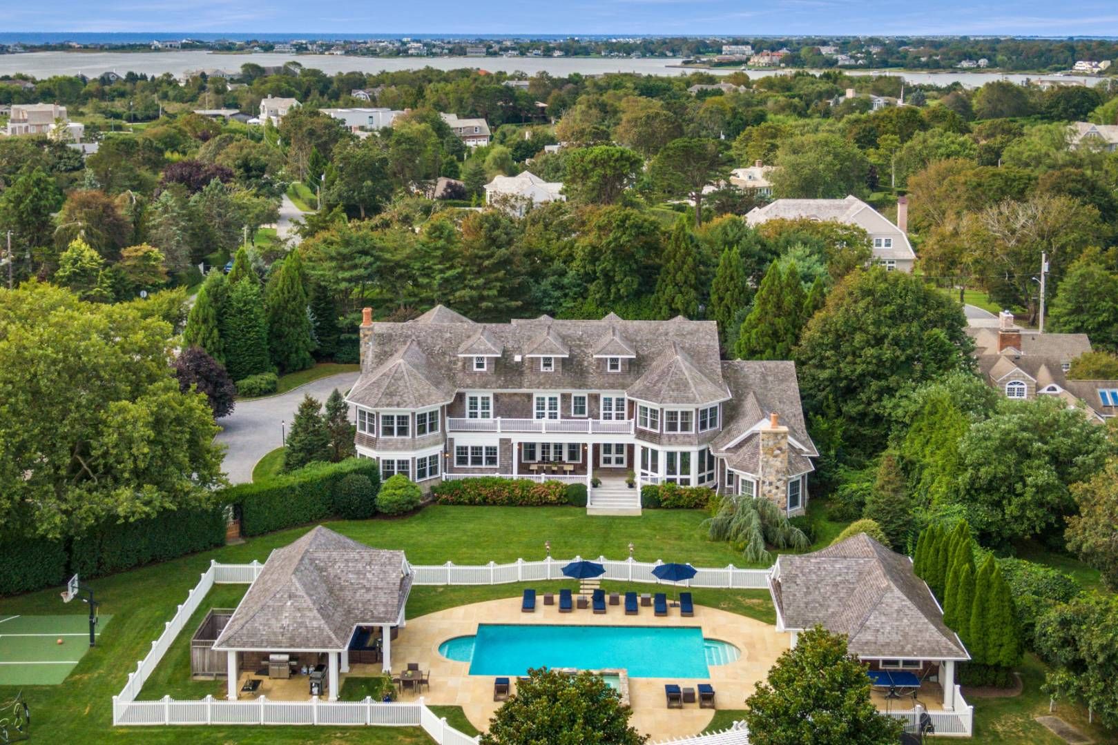 An expansive, private estate in the heart of the Village of Quogue offered for sale for the first time. There is nothing like this property in the Quogue "Forum," the estate section south of the highway with wide tree-lined streets and easy access to shops, restaurants, theater, beach, and golf courses. Situated on two acres fronting Quogue Street, this 9,788sf 9-bedroom property, built in 2006, is an all-inclusive compound with multiple high-
