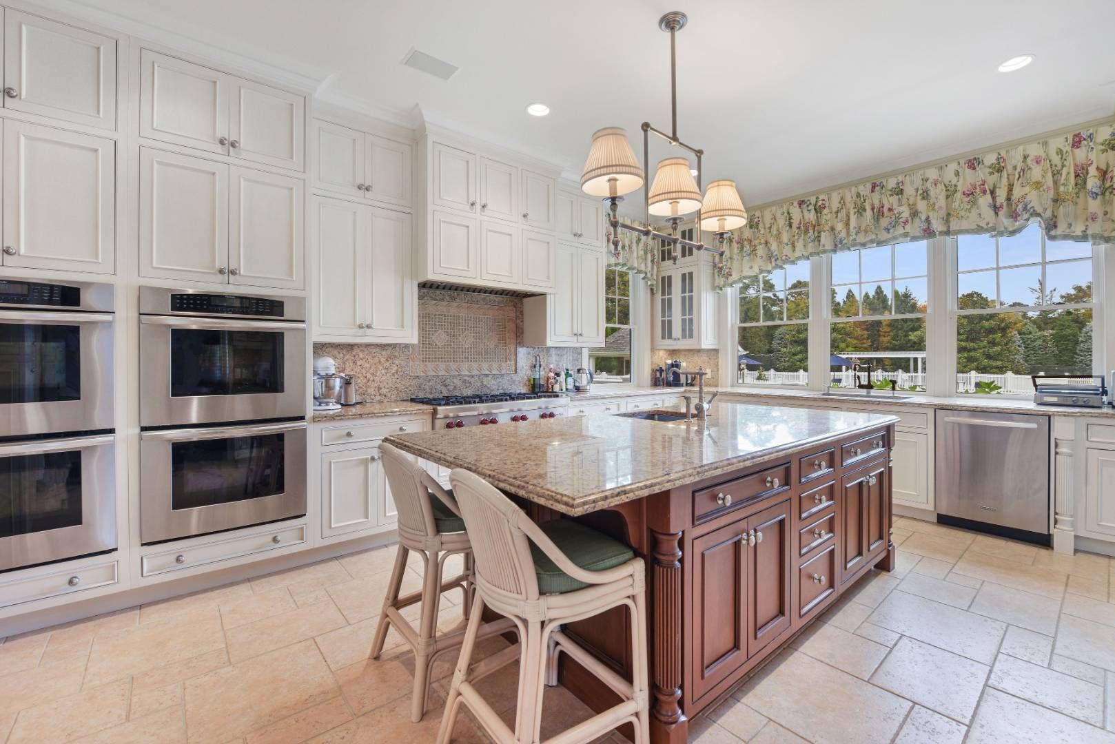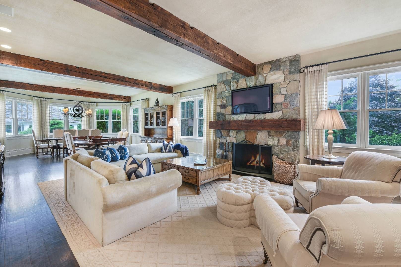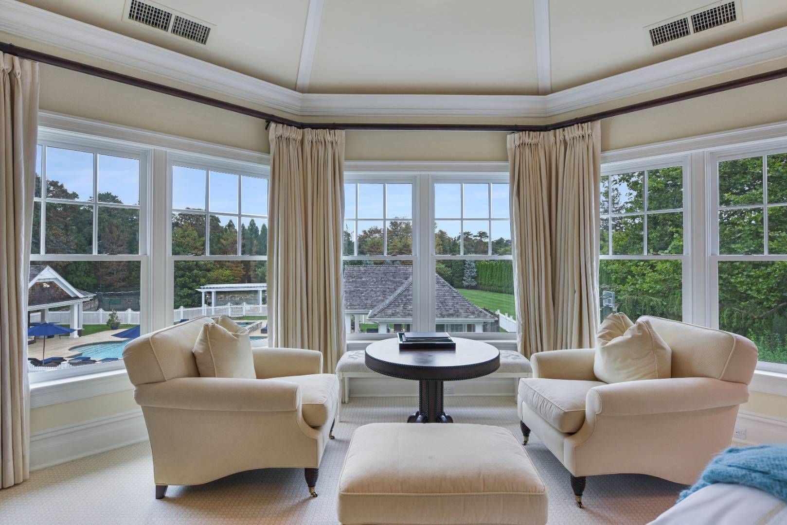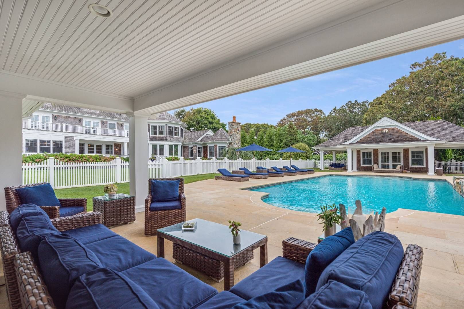 An expansive, private estate in the heart of the Village of Quogue offered for sale for the first time. There is nothing like this property in the Quogue "Forum," the estate section south of the highway with wide tree-lined streets and easy access to shops, restaurants, theater, beach, and golf courses. Situated on two acres fronting Quogue Street, this 9,788sf 9-bedroom property, built in 2006, is an all-inclusive compound with multiple high-