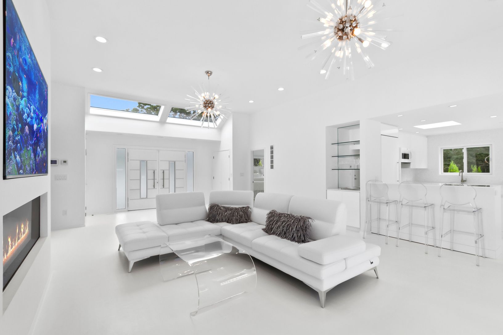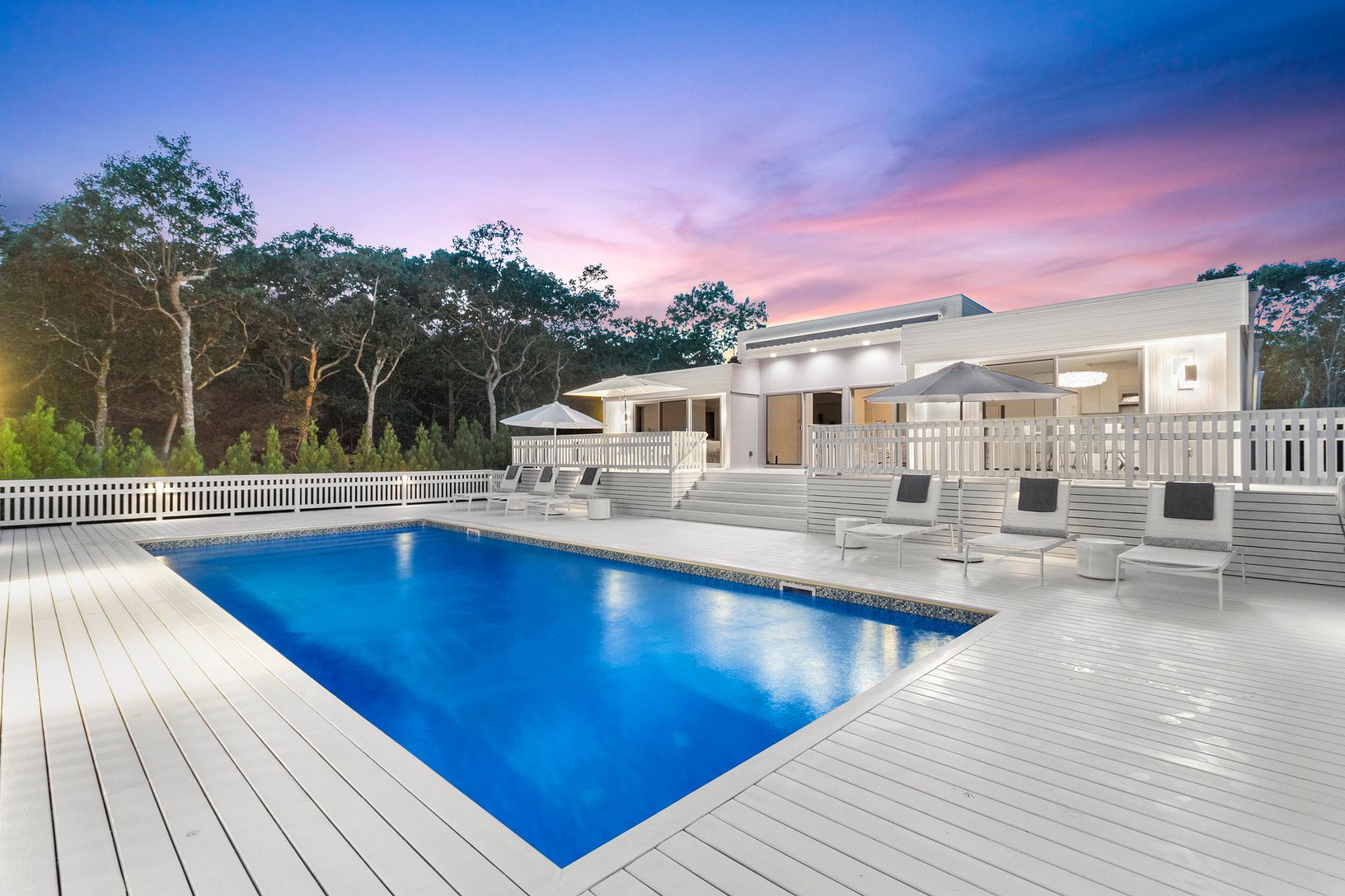 Five Star resort living is realized in this completely reconstructed and renovated one acre East Hampton retreat. Created for the most discerning of Hamptons home owners pursuing transcendence, your experience begins as you drive down the long glittering white stone circular driveway, lined by towering brilliant green cryptomeria, to arrive at the specially sourced white Carrera marble exterior entryway. Upon entering this extraordinary proper