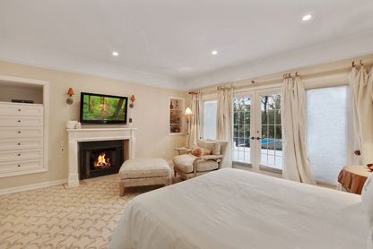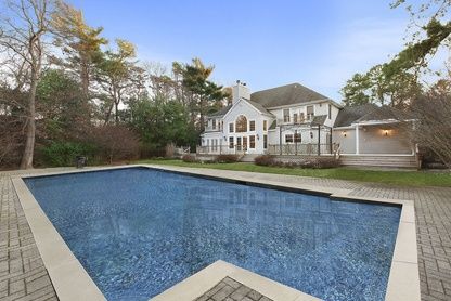 Set on 2 private south-of-the-highway acres in Quogue (on oak-shaded land once owned by the Merrill and Lynch families) resides a true Hamptons showcase residence. This nearly 4,300 SF Post Modern boasts 4 bedrooms, 4.5 baths, top-of-the-line materials and impeccable attention to design details. An expansive two-story entry leads to a light-filled living room with hand-painted oak flooring, floor-to-ceiling windows, and an imported limestone f