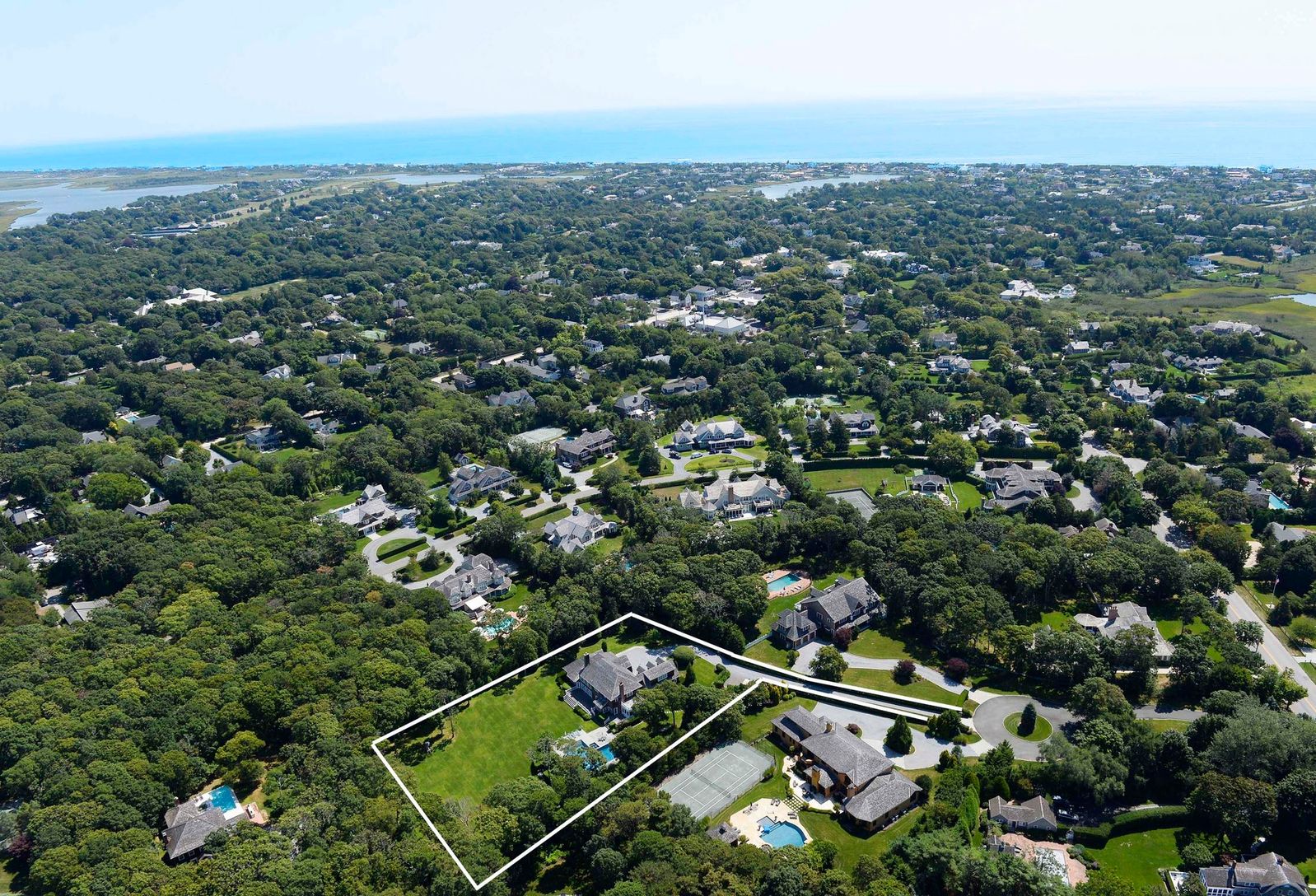 This stunner in Quogue South has everything today's buyers want--an elegant and open floor plan with ample living space and privacy in a desirable Hamptons location. Drive down the privacy hedged flag lot to arrive at this 4,354 sq. ft. traditional with 5 bedrooms and 5 1/2 baths on nearly 2 acres of lush landscaping. The first floor includes an open and sunny floor plan designed for relaxing and entertaining. Here you'll find a 2-story great