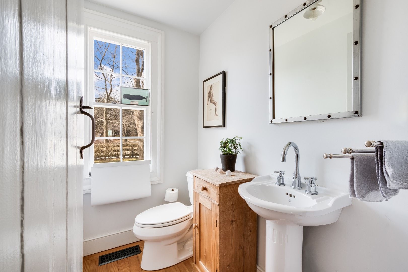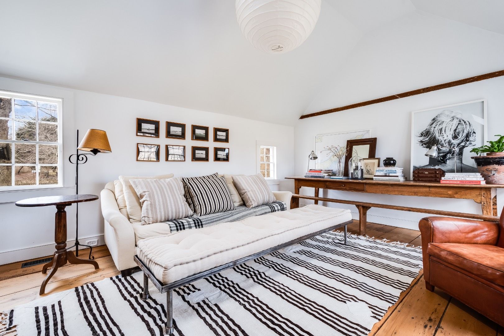 There's a reason that piece of wood flooring in the entry of a door is called a "threshold". As you enter Sherrill Farmhouse, and cross over that threshold, you are entering a cozy and stylish retreat. As you hang your straw hat on one of the 5 cast iron coat hooks in the front hallway, you are leaving the rush of the outside world behind. This masterfully restored circa 1858 Greek Revival Farmhouse has deep roots in the history of East Hampto
