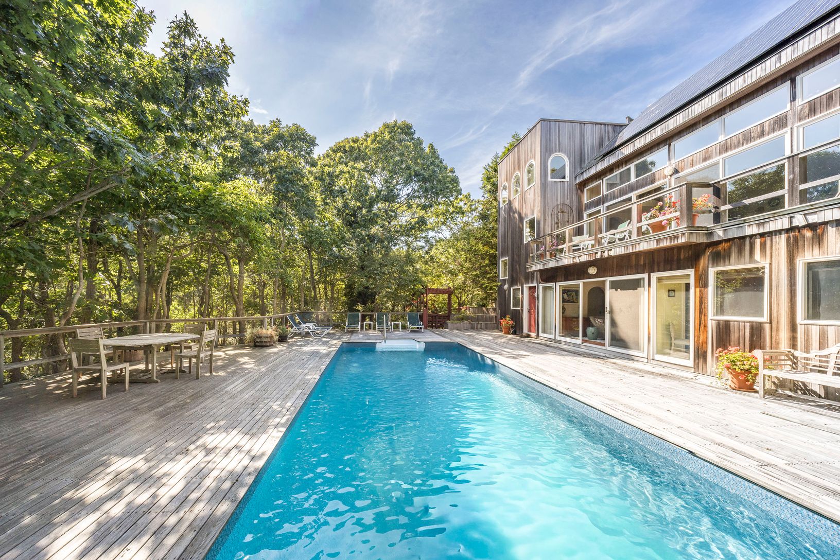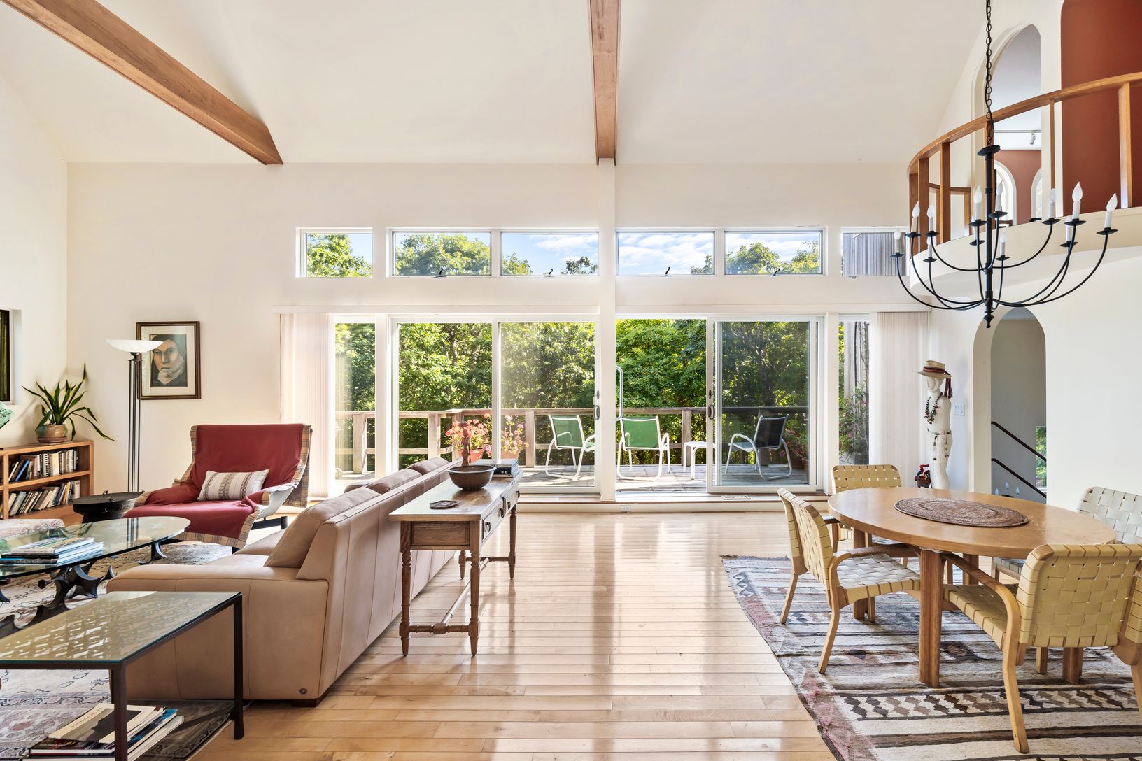 This custom Montauk offering was carefully sited at the pinnacle elevation on this wooded shy .91-acre parcel oriented to enjoy southern exposure and horizon ocean views. Encompassing 2104 SF as a multi-level home offering a level for everyone to immerse themselves in. A cathedral foyer entry leads to a lounge with a wet bar, 3 guest bedrooms, 2 baths, and a generous mud room with access to the 2-car garage. At this level the sliding glass d