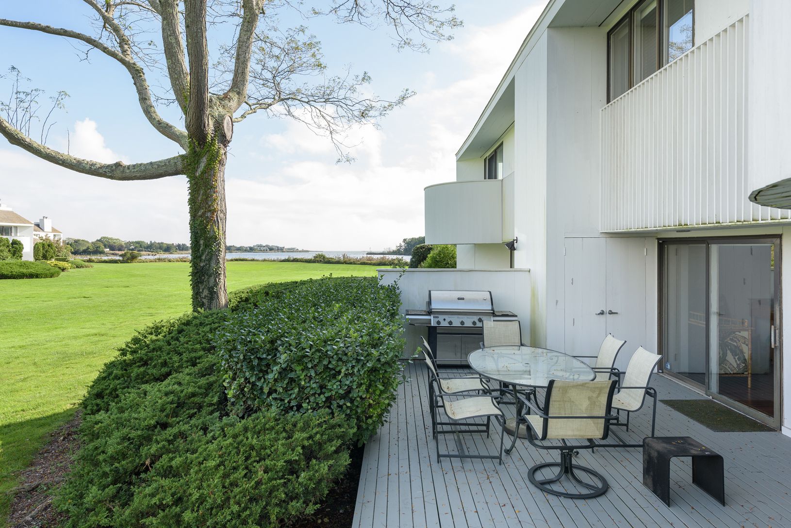Welcome to Mecox Landing, a modern, gorgeous waterfront condominium community that is conveniently located in Watermill south, between Bridgehampton and Southampton. It is here that you will find bay breezes, a three bedroom, two and one-half bath unit that lives like a home. The master bedroom suite offers terrific space with a sitting balcony that has water views, a renovated bathroom, and walk-in closet. Wonderfully updated, the kitchen off