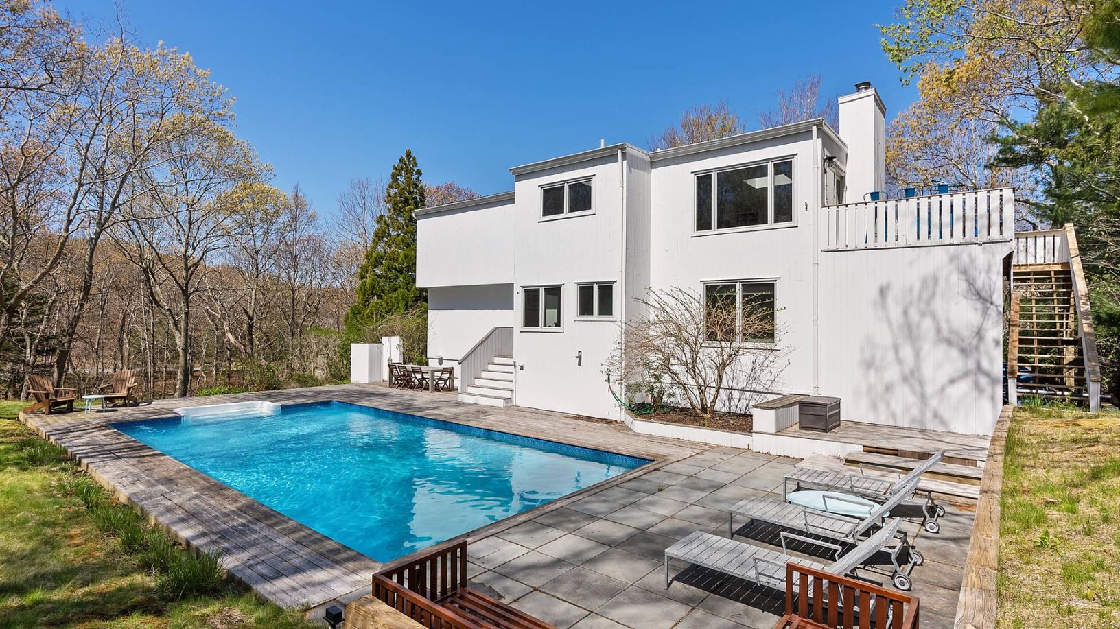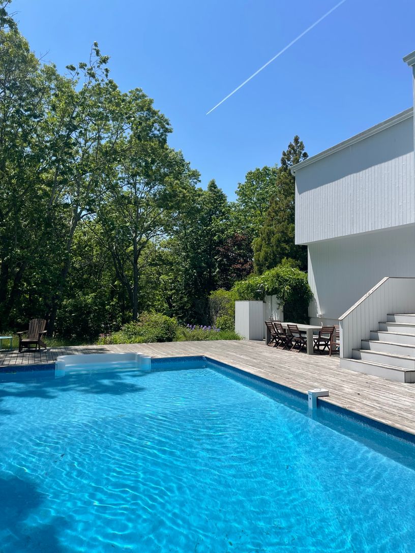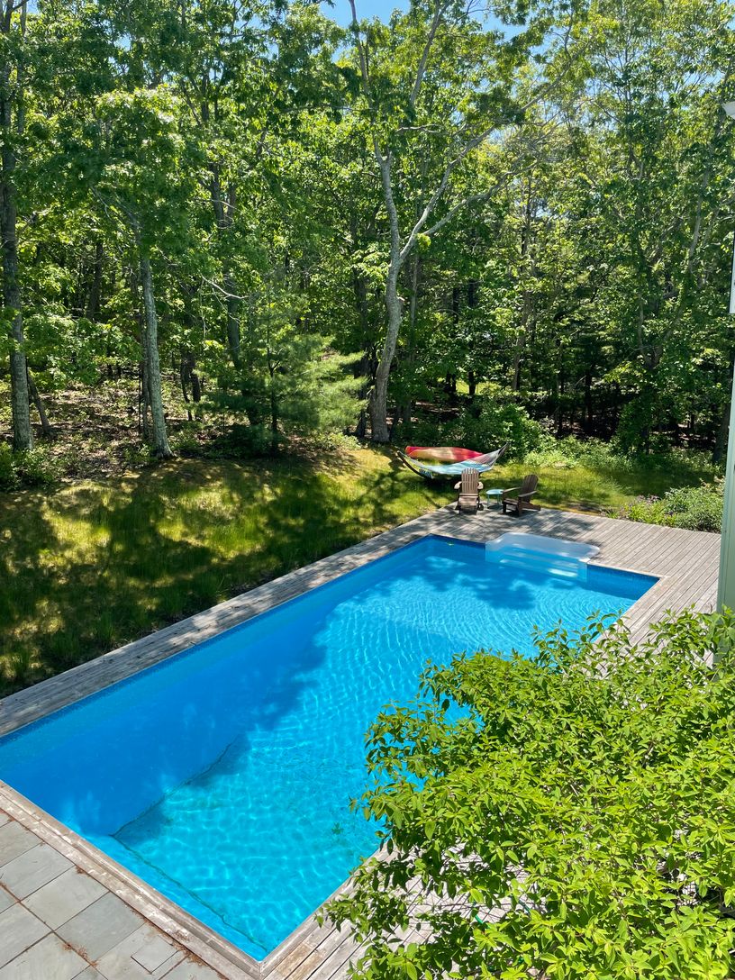 This stunning East Hampton contemporary sits proudly on a hill in the very popular area of the Northwest Woods. This sophisticated 3+ bedroom, 3 bath home boasts an upscale kitchen, open dining room and light-filled living area. The backyard and generous decking offer privacy plus easy living and entertaining space. Whether you are relaxing by the heated 20'x40' pool or exploring beautiful Three Mile Harbor via the deeded bay access, you are i