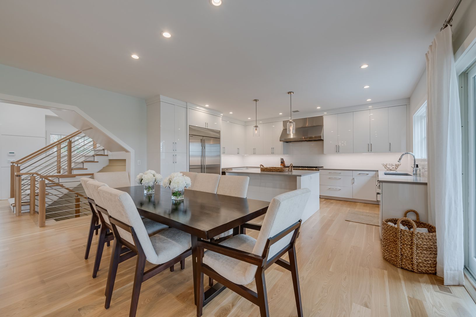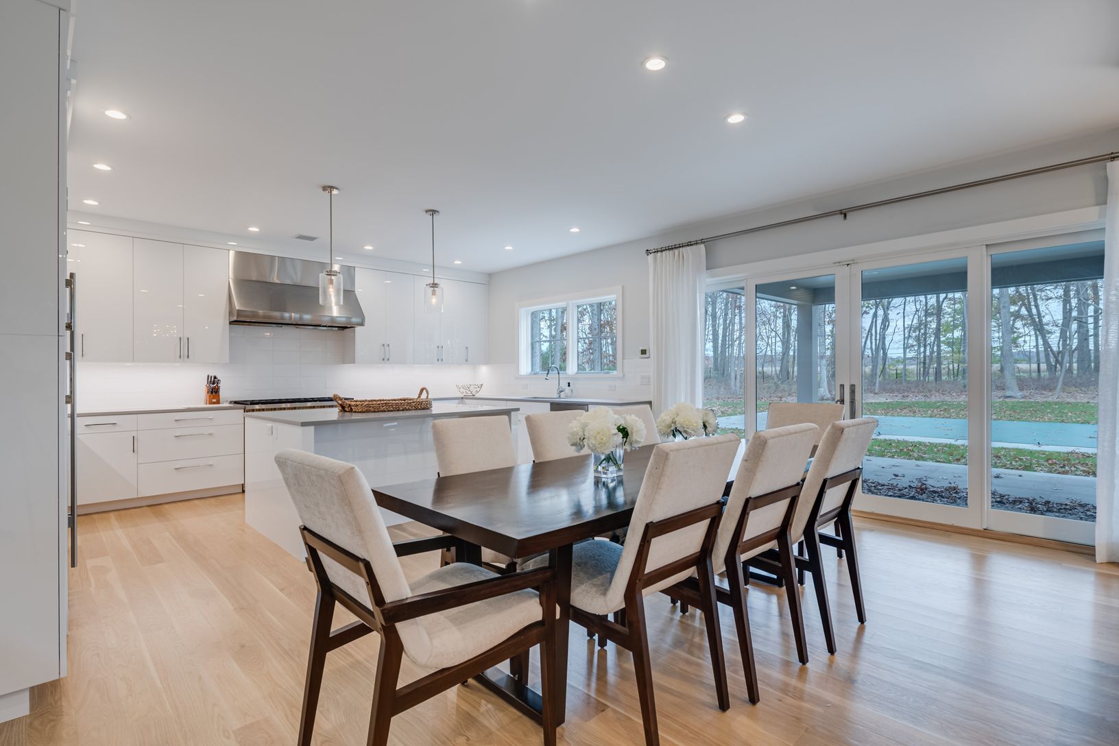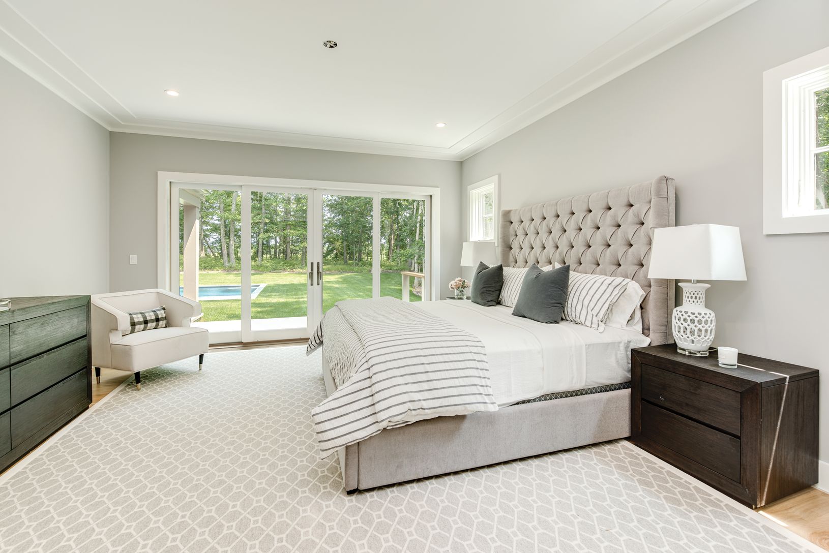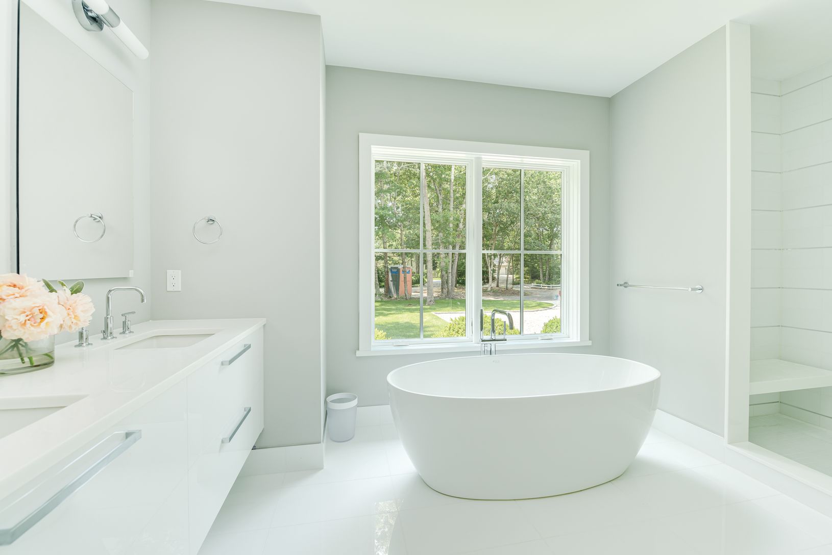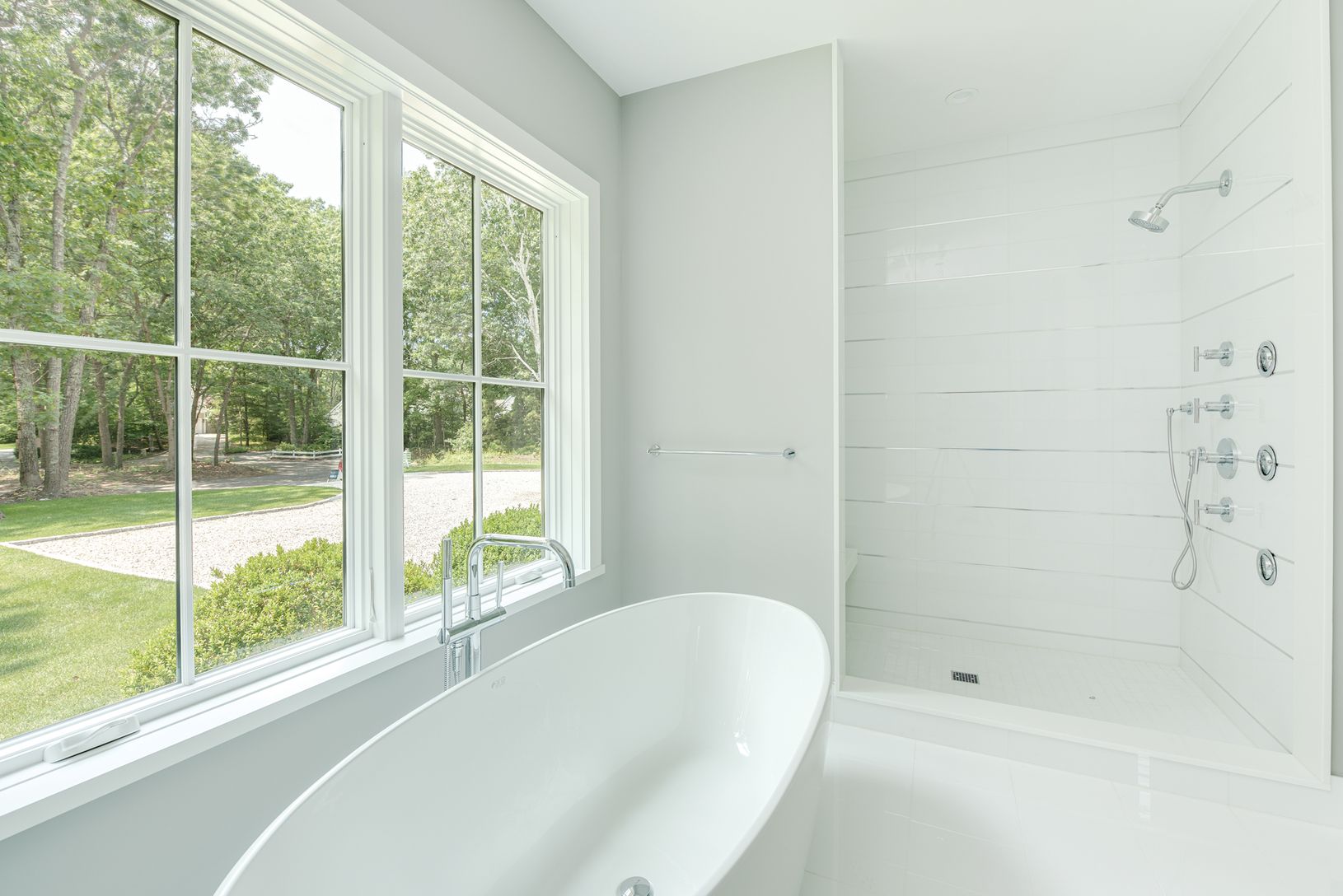 Brand new two-story traditional built by Farrell on .69+/- acre in the Hansom Hills neighborhood of East Hampton offers 4,506+/- sq. ft. of living space (inclusive of finished lower level). The six bedrooms, six full and two half baths include the generous first floor master suite on one side of the home, which has glass doors to a patio, two walk-in closets, and bath with tub, shower and radiant-heated flooring. Open concept living areas feat
