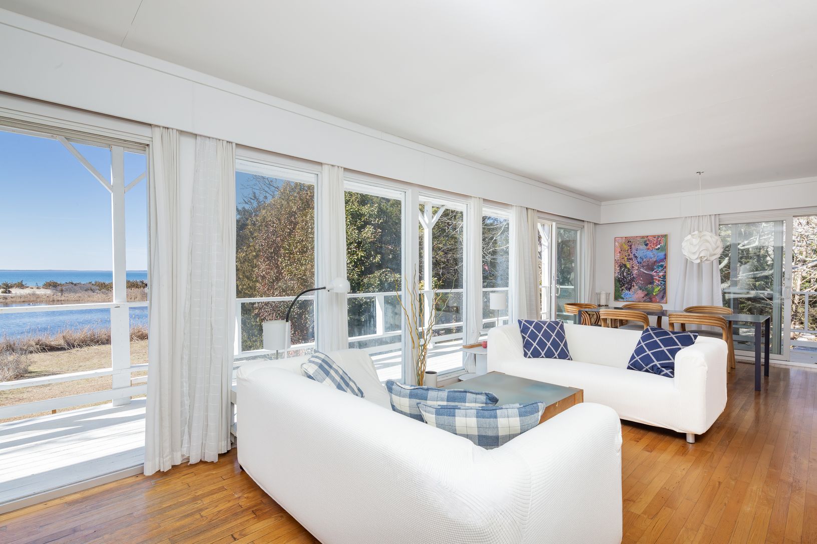 Tucked within the peaceful enclave of Lion Head Beach Association, this inviting three-bedroom, two-bath home offers a rare opportunity to experience the Hamptons at its most serene. Surrounded by nature and overlooking a tranquil pond with breathtaking views of Gardiner's Bay beyond, the setting is nothing short of magical. Evenings unfold with spectacular sunsets that paint the sky in vivid color, while the gentle sounds of birds and bay bre